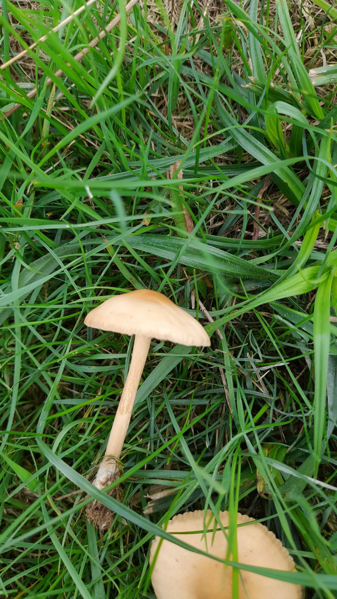 Nelkenschwindlinge kann man mit Vielem verwechseln. Es gibt nicht nur einen hellgelben/hellbeigen Pilz auf Rasen. Gehe daher bitte mit deinem Fund zum Pilzberater und lasse ihn dort absegnen.