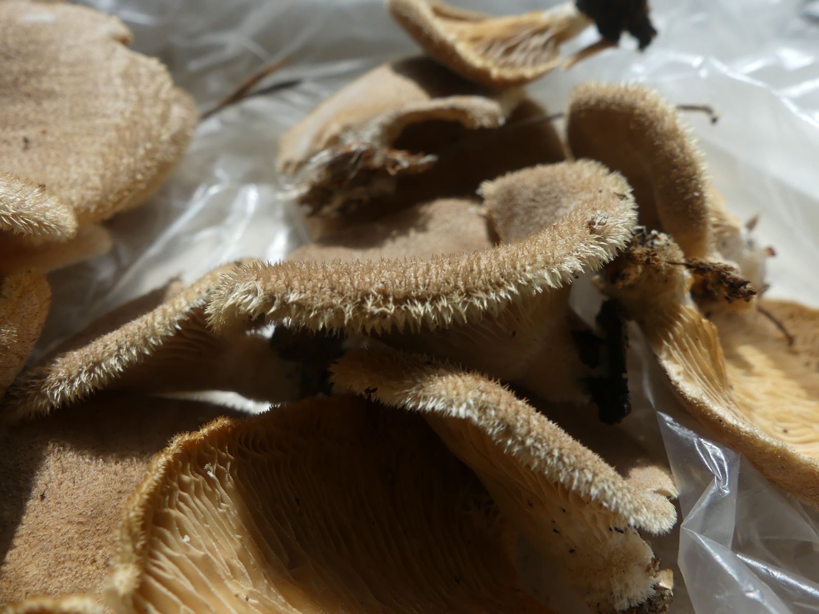 Ich halte das für Lentinus strigosus, der Borstige Knäueling. Jedenfalls konnte ich keine andere passende Art in meiner Literatur finden und die Weiten des Internet habe auch nicht bis zum letzten Winkel ausgeleuchtet. Daher meine Frage, ob die Bestimmung passt und ob es irgendwelche Verwechslungspartner/Doppelgänger gibt.
