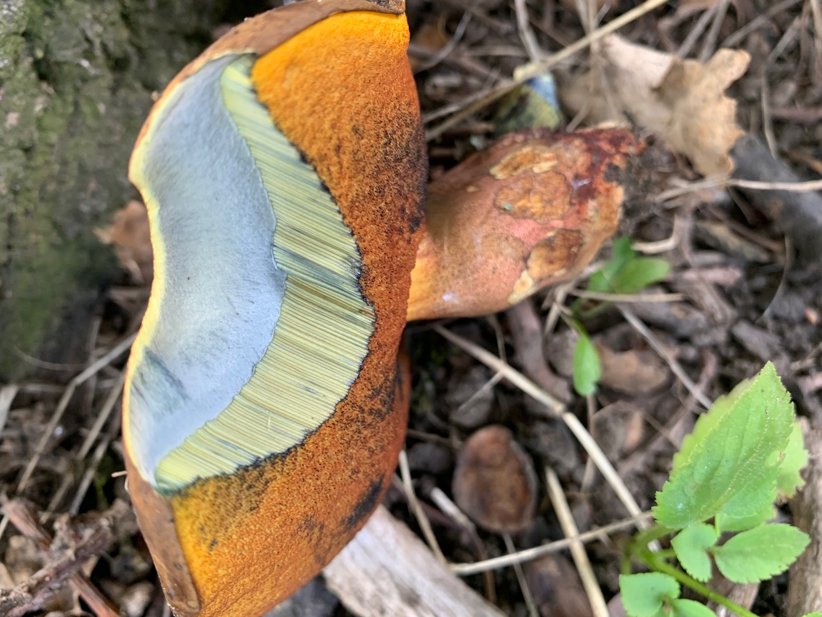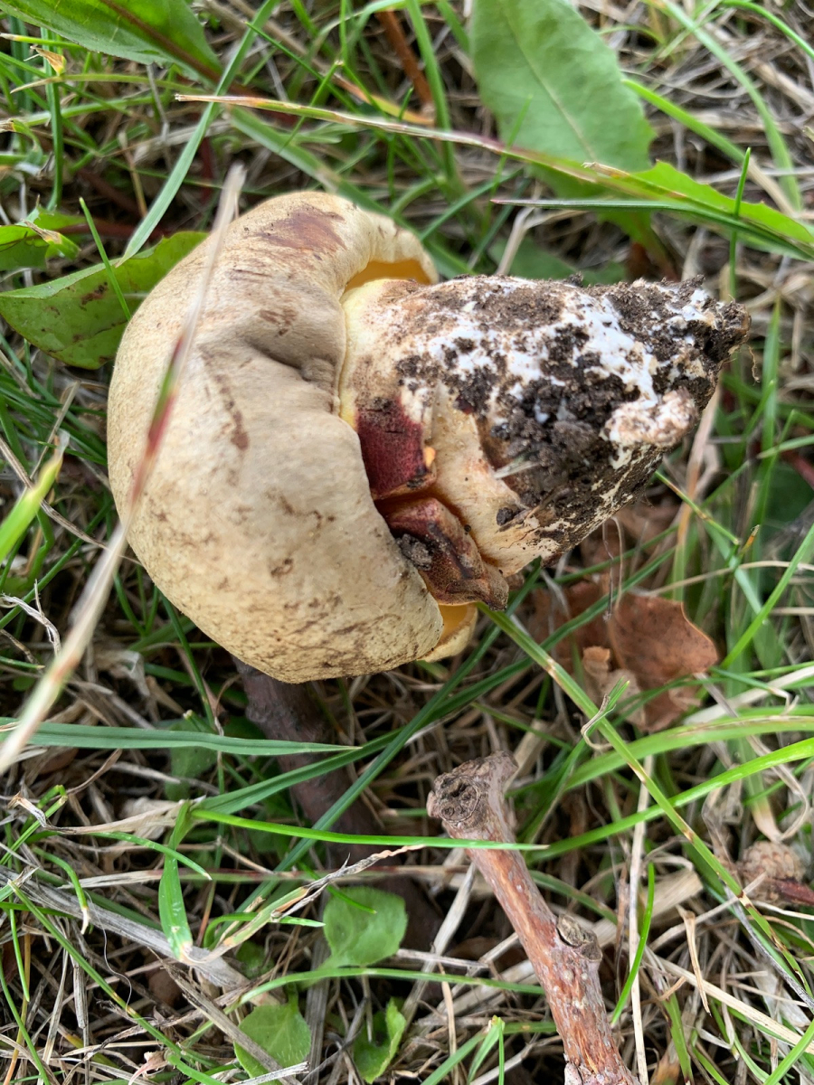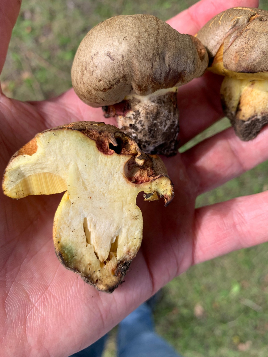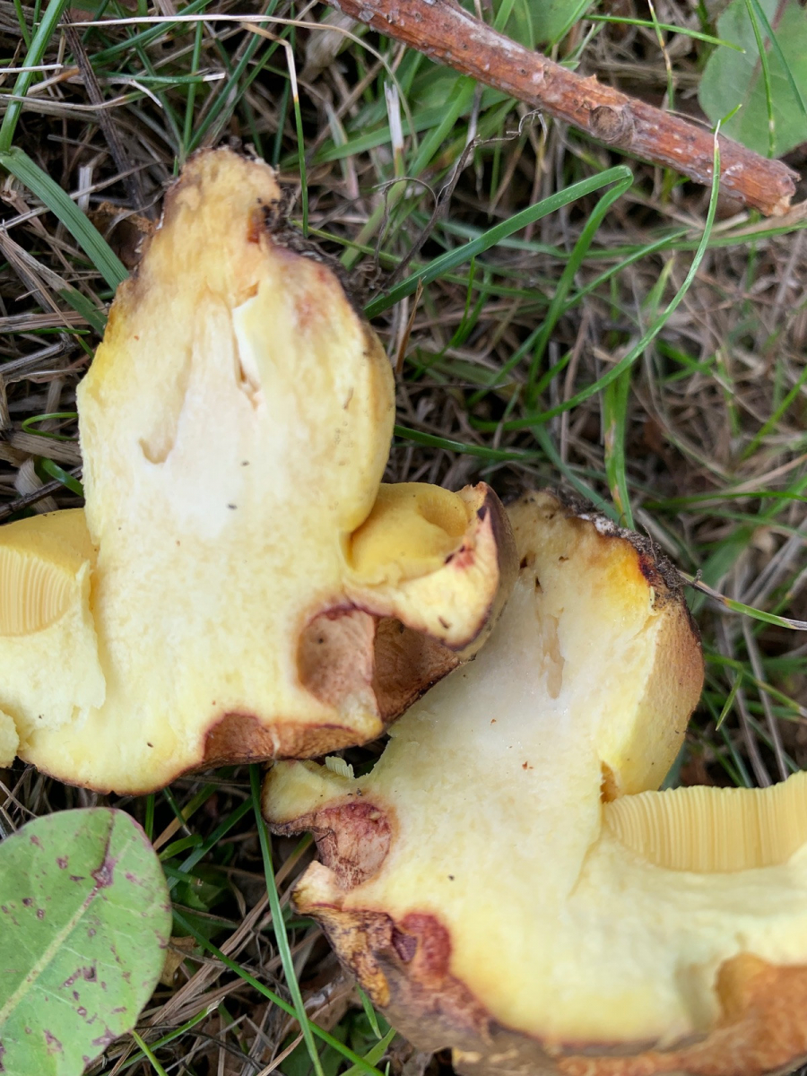 Wollte mir hier mal einen Röhrlingsfund bestätigen lassen, der zwar vielleicht für Süddeutschland, aber keinesfalls für Nordengland trivial ist. Fundort in Vollsonne neben einer großen Alleeeiche, dort drückten sich bestimmt 15 graue Knubbel aus der Erde. Dachte da natürlich sofort an Wubi, aber die Farbe passte nicht ganz und ein durchgeschnittenes Exemplar blaute nicht und hatte kein Netz. Geruch meines Empfindens nach sehr nah am Karboli in der Stielbasis. Das sollte doch der Fahle Röhrling sein, der gilt in England und erst recht im Norden als ziemlich selten. Einer färbte außen am Stiel blaugrün, das habe ich auf äußere Einflüsse geschoben.