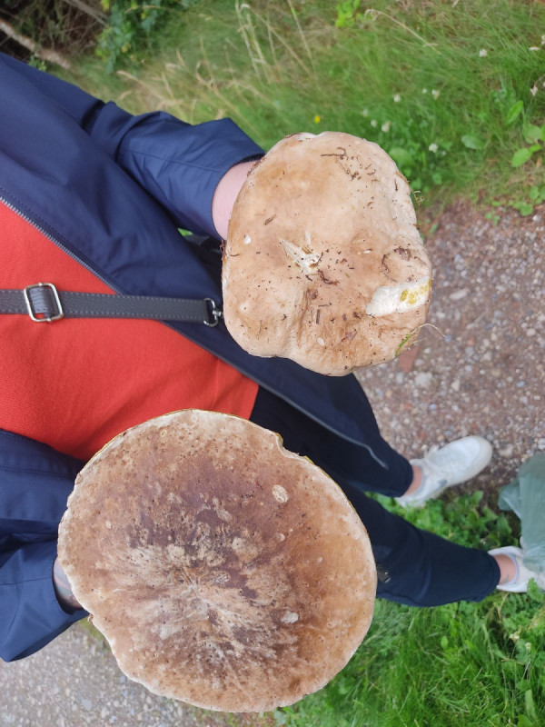 das sind Steinpilze, aber schon in einem fortgeschrittenerem Alter. Ganz jung wären die Röhren weißlich sichtbar, mit zunehmendem Alter wird das gelblicher bis hin zu olivgrünlich.