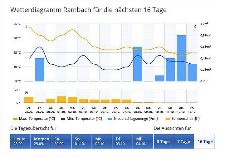 Ich glaube mit vielen Pilzen ist nicht zu rechnen, im September vielen 35 l und wie Wolfgang schon aufzeigt, ist die nächste Zeit auch nicht mit Regen zu rechnen