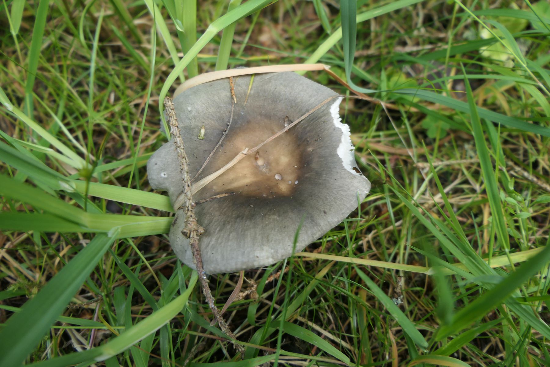 Hier mal 05 Russula parazurea - der Blaugrüne Reiftäubling, hier vorallem grau (auch unter der Huthaut), bei Fichten, Guajak null an Stiel und Lamellen. FeSO4 maximal schwach rosa.