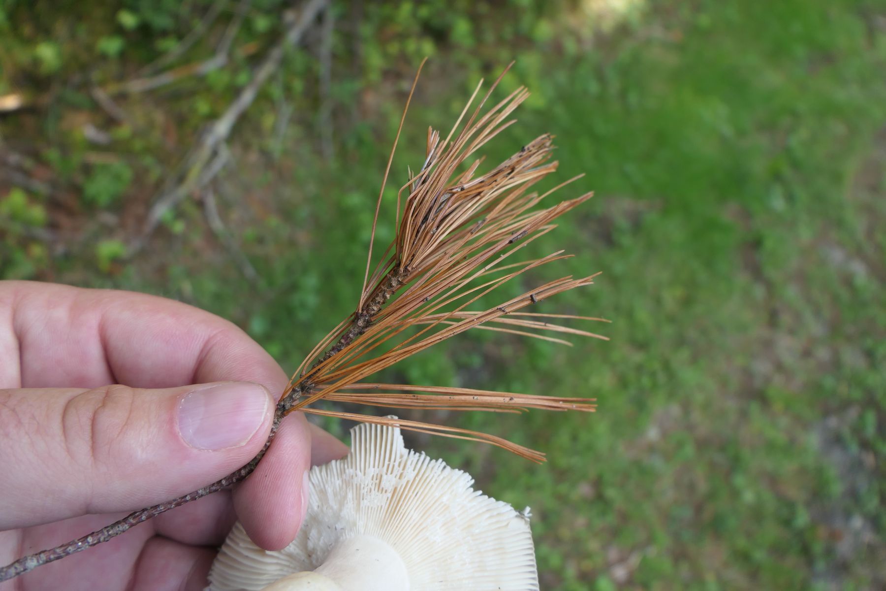 Dann an fünfnadeliger Kiefer hatte ich auf Suillus placidus - den Elfenbeinröhrling gehofft, den kenne ich von diesem Standort, konnte ihn aber nicht finden. Vielleicht kommt ja die Tage noch etwas. Ich bleibe mal dran.