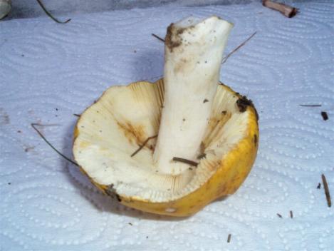 Auch da gebe ich dir recht, denn so einen intensiv gelben Hut hat sonst kaum ein Täubling. Darum auch meine Frage, ob sich das Fleisch im Schnitt verfärbt.