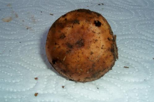 zuerst fand ich einen kleinen perlpilz, 2 schöne große hexen (netzstielig denke ich), einen älteren parasol und noch jede menge gefleckte rüblinge. durch ihren angenehmen geruch durften sie erstmal mit aufs pilzfoto, aber nach näherer bestimmung wurden sie aussortiert. schade, sie täuschen einem fast champignonähnliche gerüche vor, sind madenfrei aber eben doch bitter.