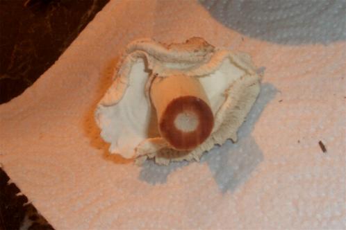 zur sporenfarbenermittlung abgeschnittenen hut mit der unterseite auf einen teller legen, anklopfen, oder wie mache ich das?