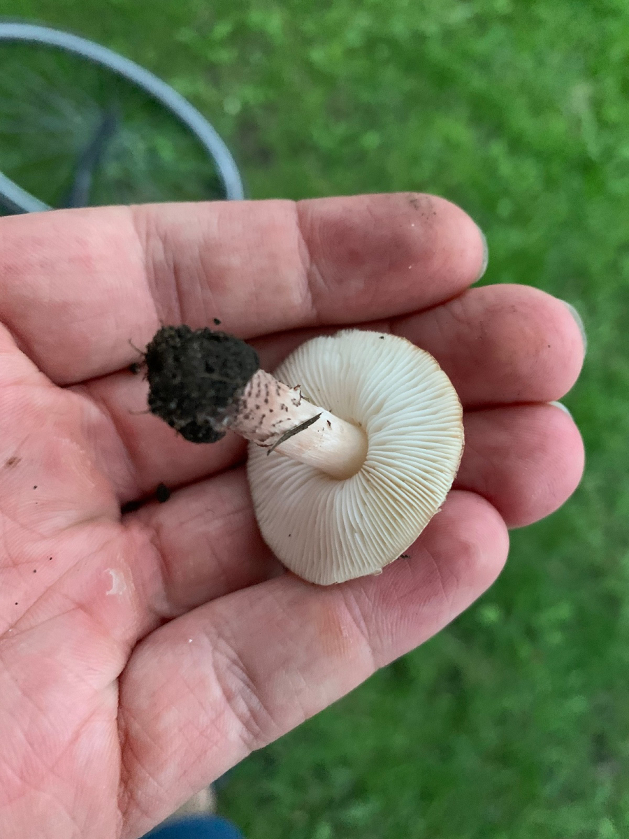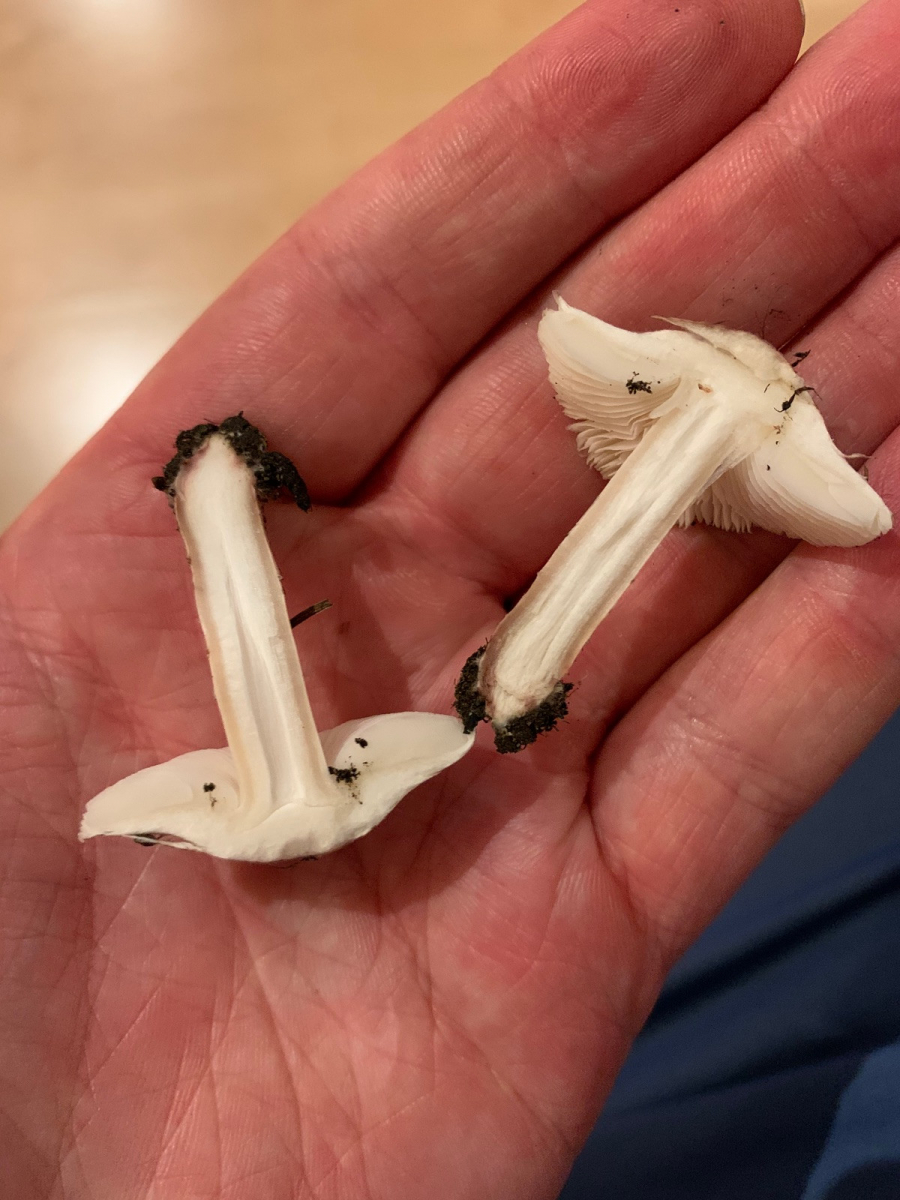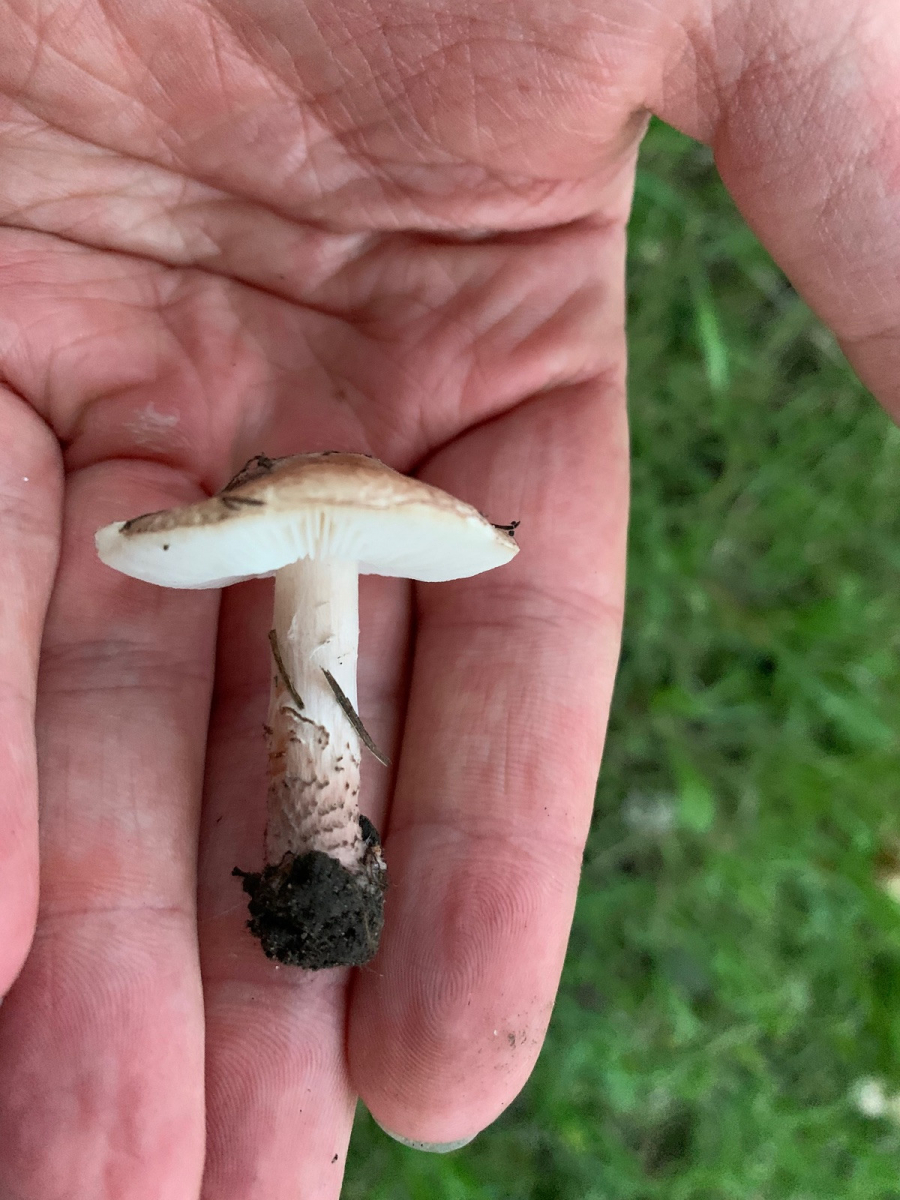 War heute nochmal an der Stelle und habe ein frisches Exemplar gefunden, bin mir jetzt recht sicher, dass das L. brunneoincarnata oder etwas nah verwandtes ist. Geruch jetzt sehr deutlich wahrnehmbar, sehr angenehm süßlich fruchtig, ein bisschen nach Citrus. Das “fleischbräunliche” kommt vor allem an der Stielbasis durch, das ist in natura eher rosabraun, man kann’s leicht im Gegenlicht erahnen. Die dunklen Velumstreifen an der Stielbasis sieht man auch sehr gut.