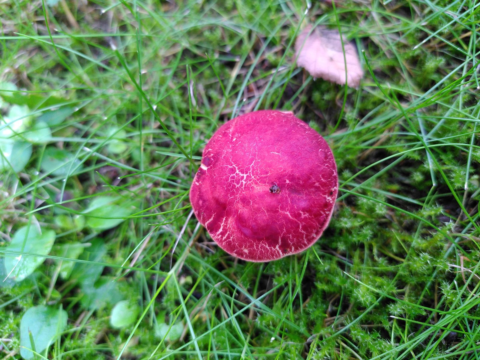 Hut: Kräftig rosarot, zum Rand heller werdend, bei feuchter Witterung trocken und samtig, feinfelderig aufgerissen, in den Rissen gelb gefärbt