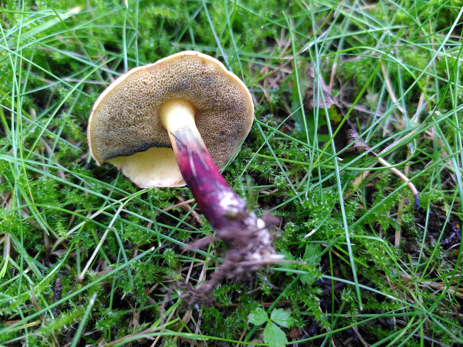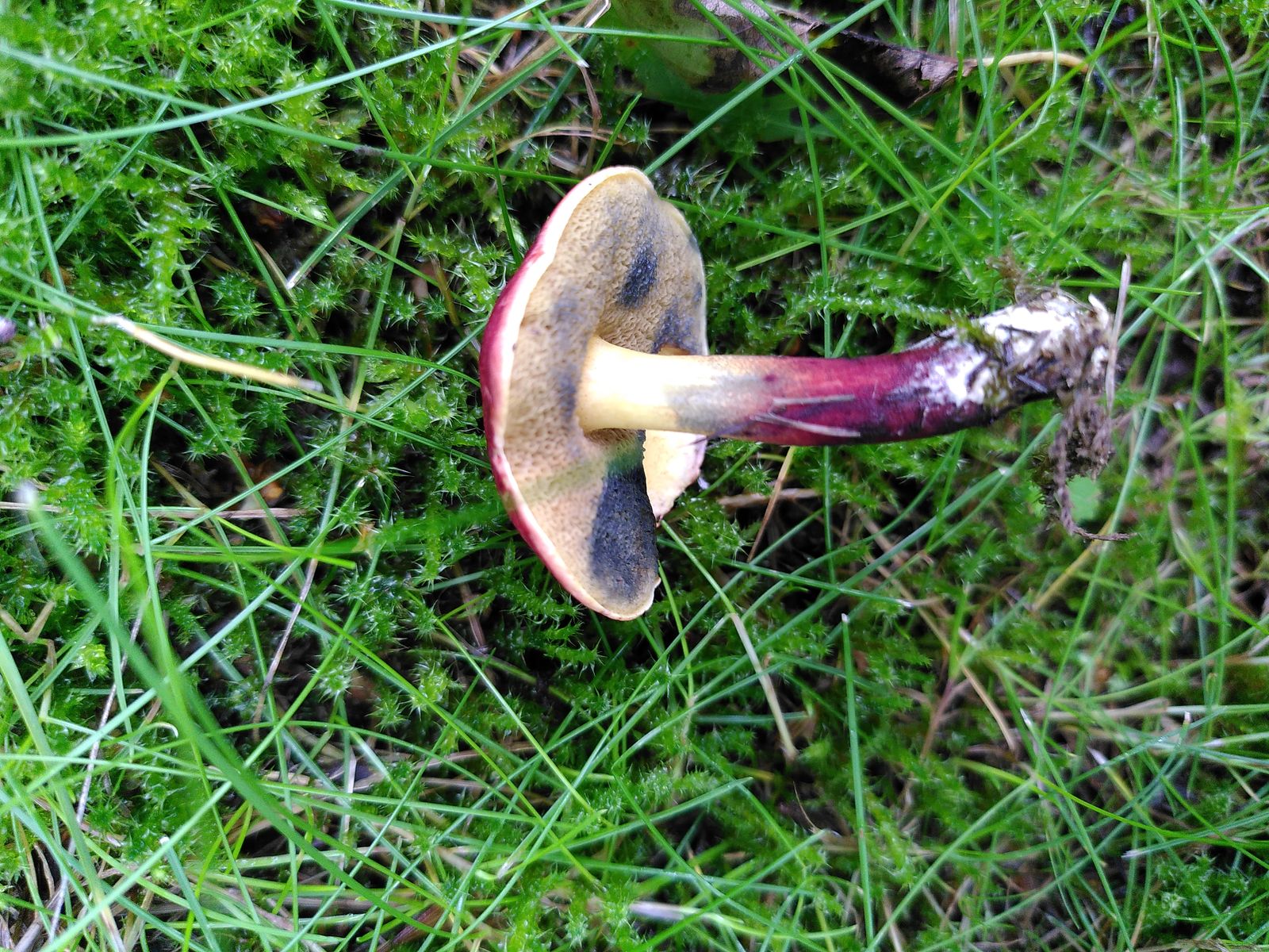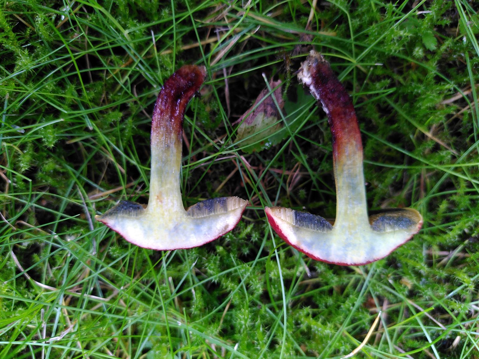 • X. cisalpinus würde ich jetzt auch eher ausschließen, weil die Huthaut kein Palisadoderm ist und bei feuchter Witterung die rötliche Subcutis in den Rissen der Huthaut sichtbar sein müsste. Und natürlich wegen der ungewöhnlichen Hutfarbe, wie @Climingfreak Stefan schon geschrieben hat.