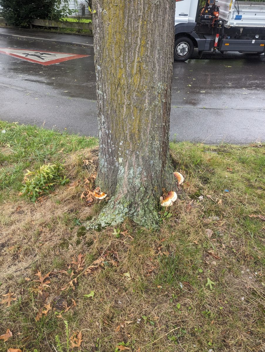 Falls du die Möglichkeit hast, könntest du den Eigentümer (vielleicht Stadt?) darauf hinweisen, damit die Eiche niemandem auf den Kopf fällt ....