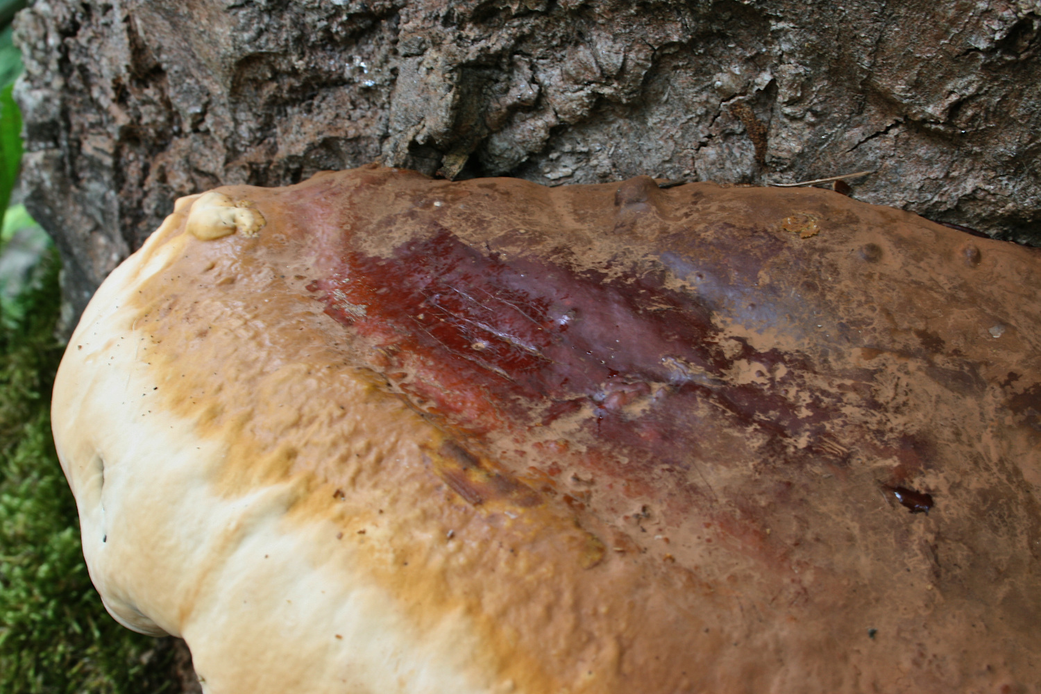Trotzdem verdichtet sich der Verdacht schon zu G. resinaceum, vor allen wegen dem schnellen Wachstum und der eindrückbaren Hutoberfläche, würde ich mal sagen.