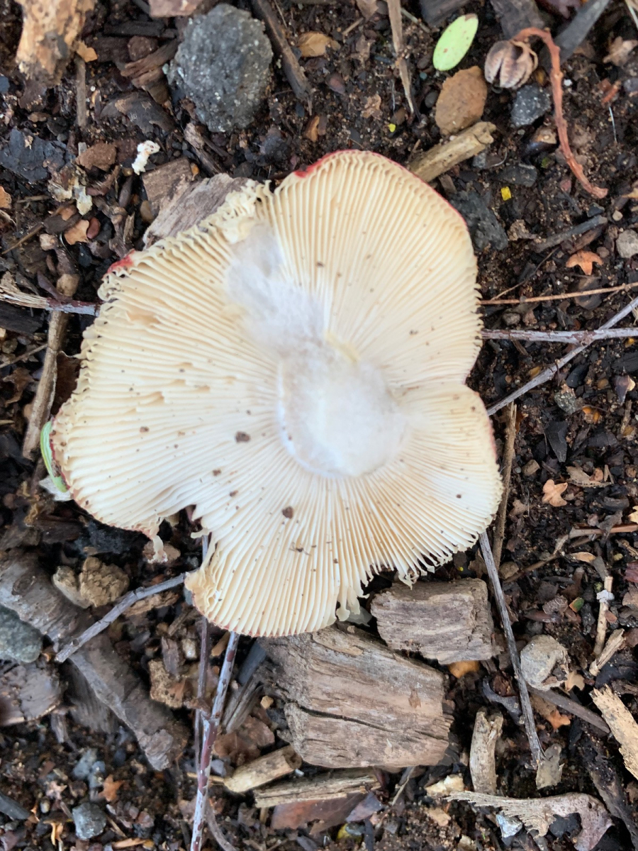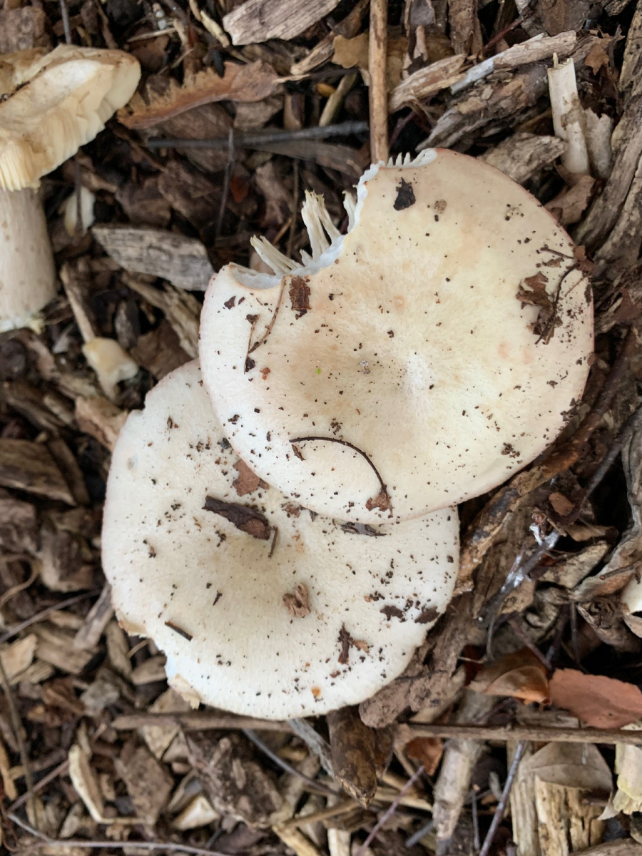 Bis sie schließlich fast ganz weiß sind, mit ganz leicht rosa gefärbtem Hutrand. Diese Exemplare sind nicht sehr alt.