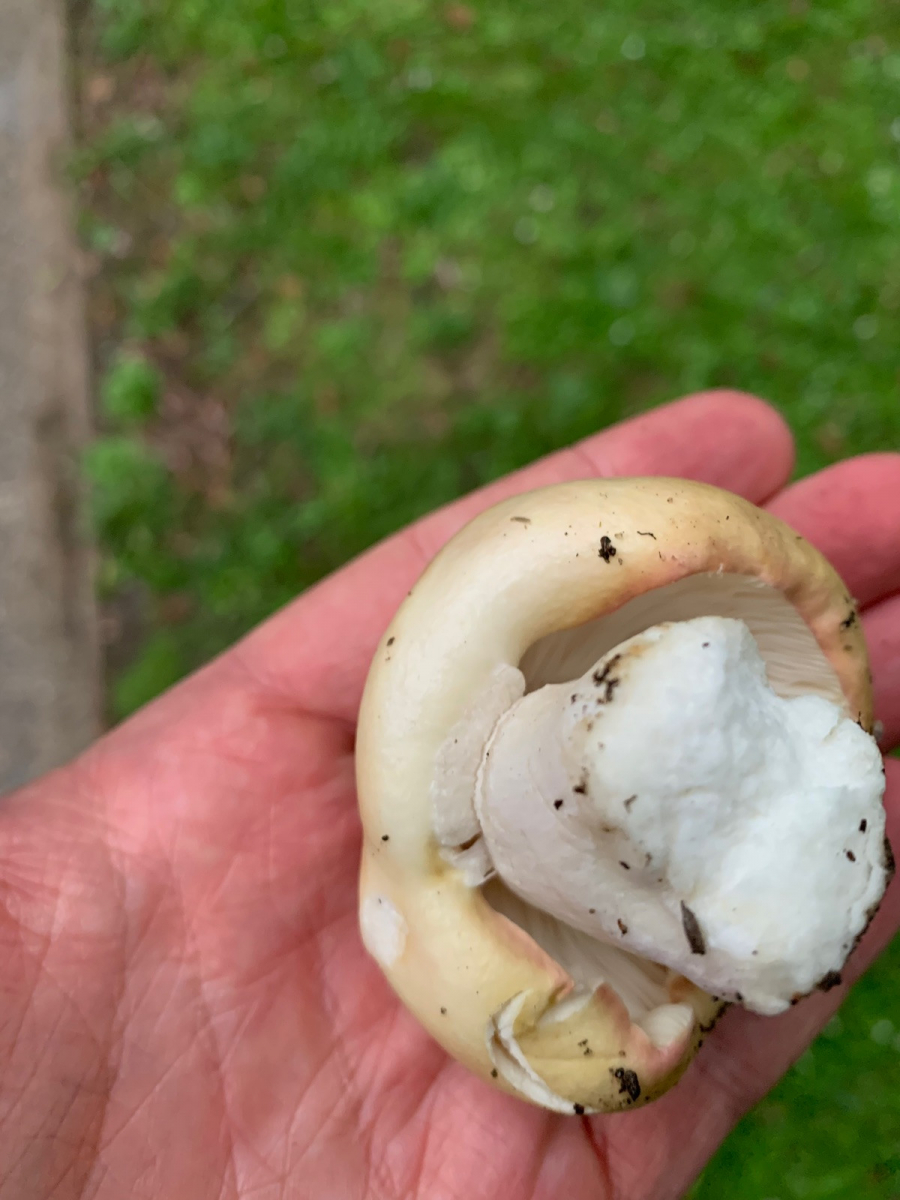 Alt färben sich die Anfangs weißen Lamellen durch das Sporenpulver dottergelb.