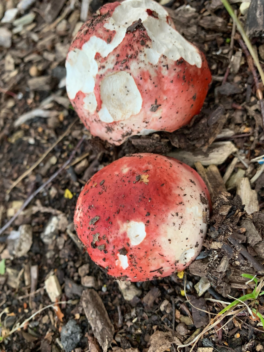 Ich finde gerade auf dem Campus in York sehr häufig diesen schicken Täubling, immer bei Birke, gerne mit Netzhexen. Der taucht hier auf den kleinsten Fleckchen Erde um Birken auf, scheint nicht viel Freiraum zu benötigen. Am anfang dachte ich, das wäre R. gracillima, da die Fruchtkörper oft ausgewachsen unter 4cm blieben. Dann dachte ich aufgrund der verschiedenen Hutfarben an unterschiedliche Arten. Die Fruchtkörper kommen knallrot aus der Erde