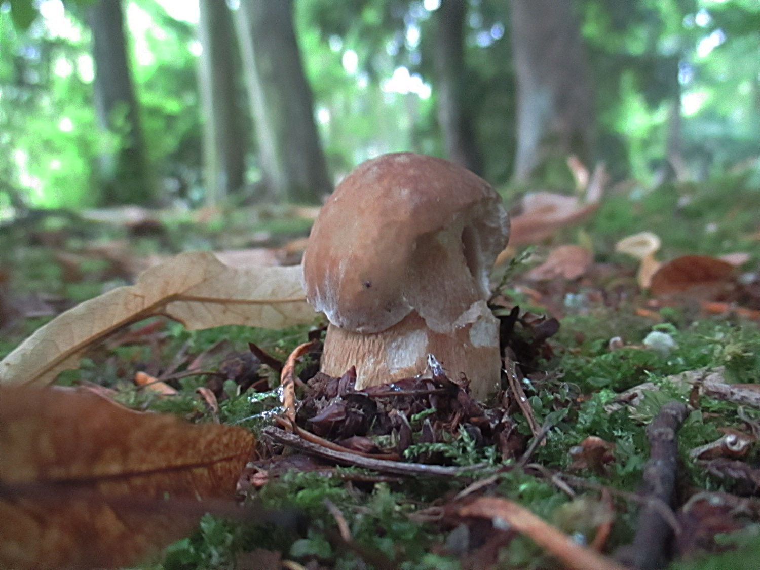 Echte Steinpilze (Boletus edulis) quälten sich gleich neben den vermeintlichen WuBis aus dem Boden.