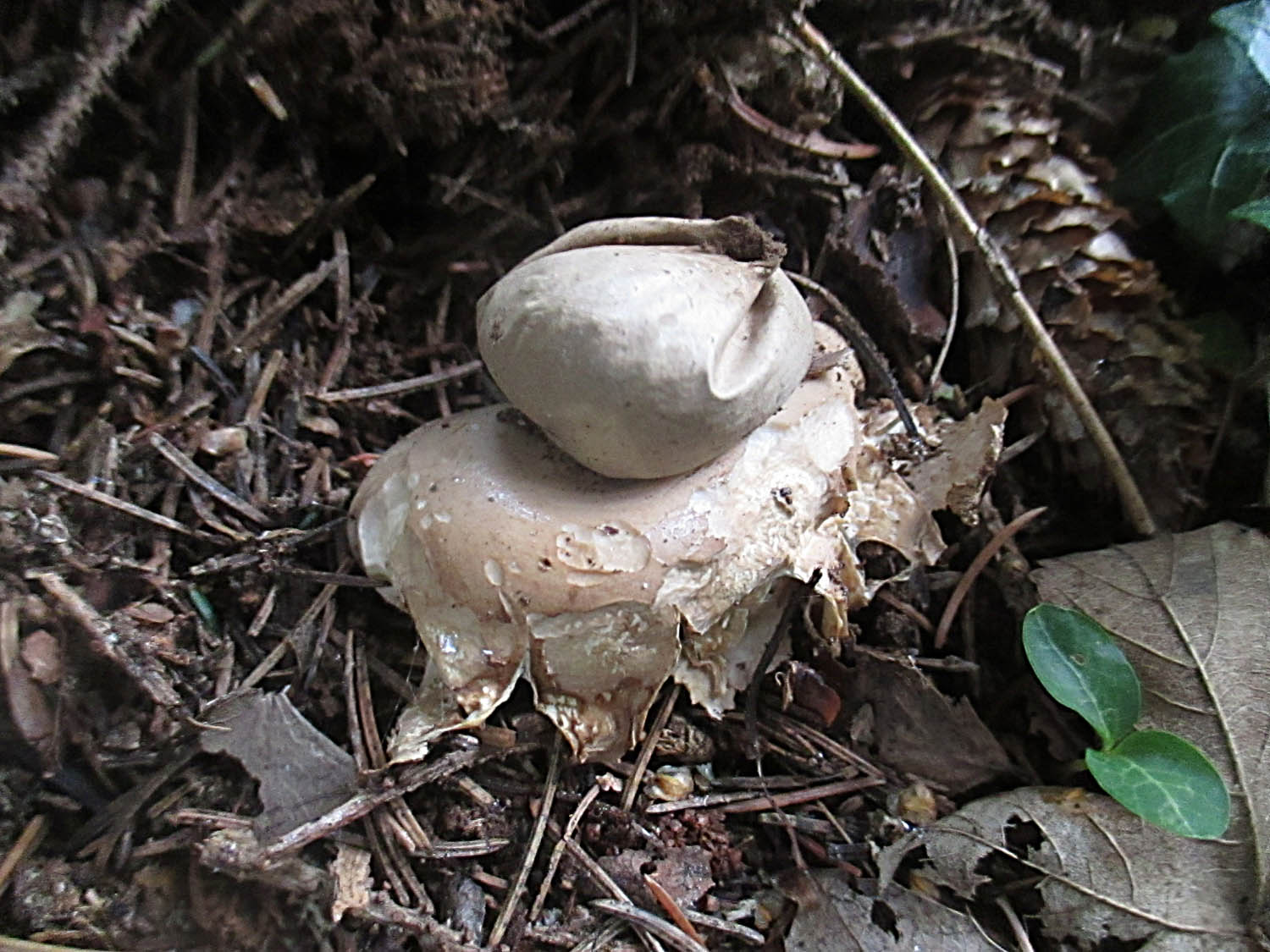 Ein einzelner Erdstern hat sich hervorgetraut. Bei dem gehe ich von Geastrum fimbriatum aus.
