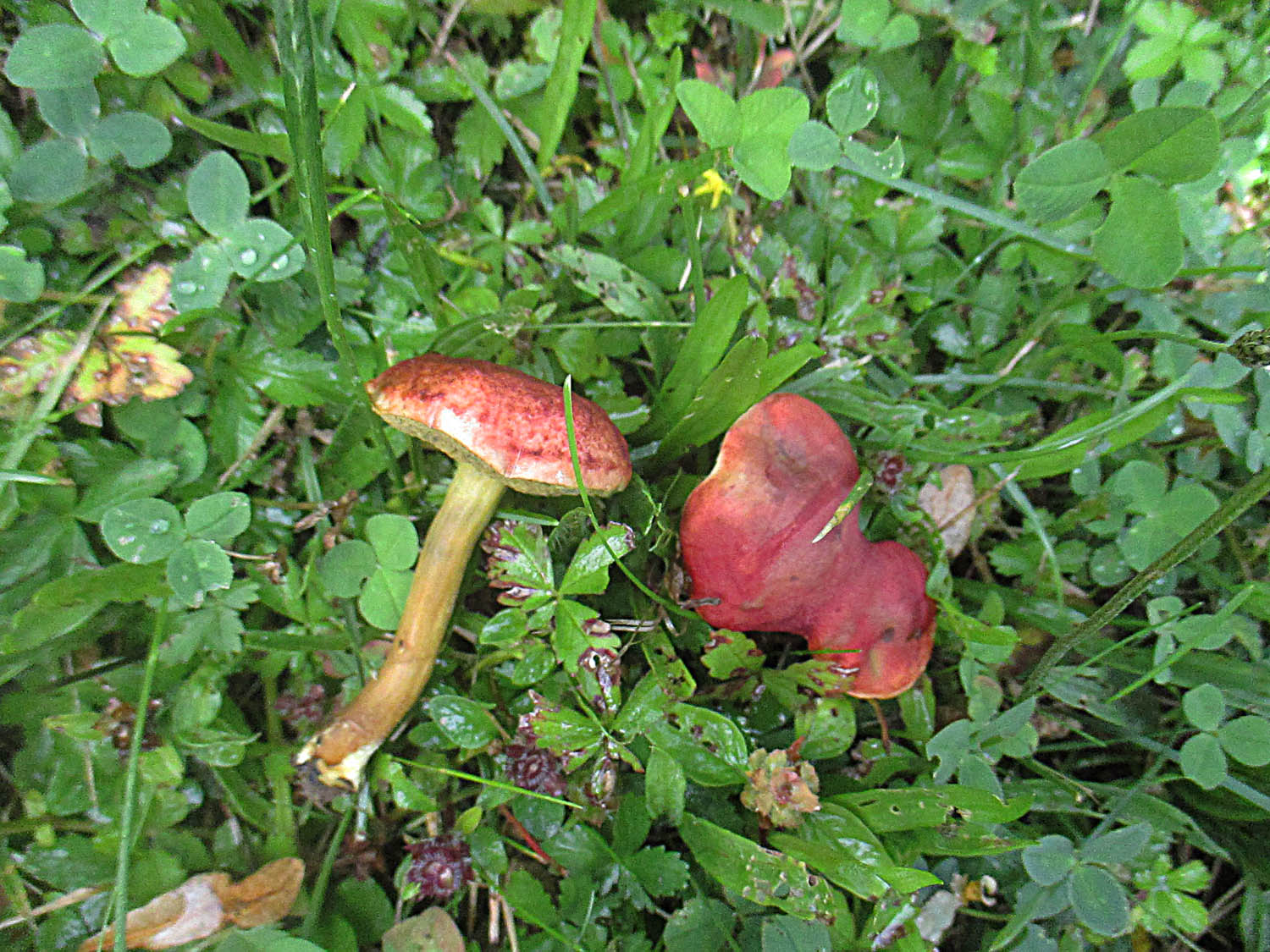 Einige wenige Netzhexen (Suillellus luridus) lugten aus dem Gras hervor.