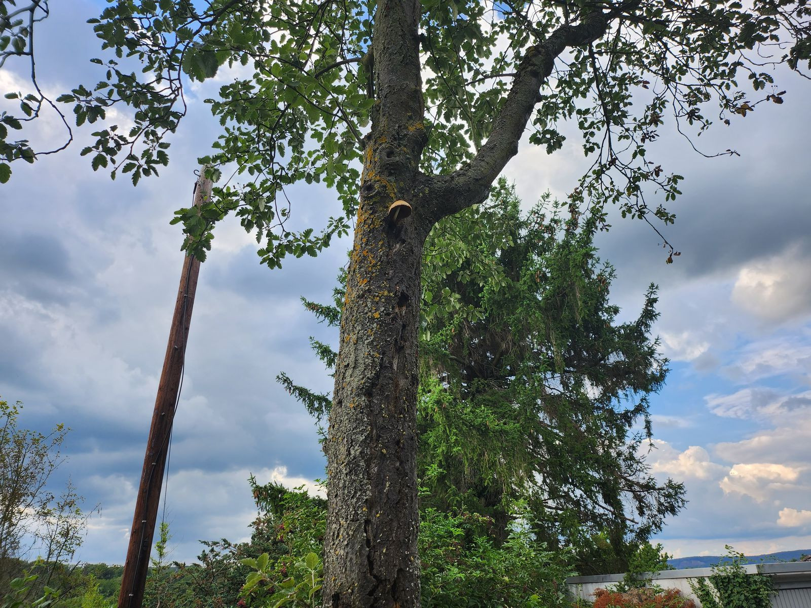 in der Straße, durch die ich ab und an fahre, befinden sich zahlreiche Sorbus intermedia als Straßenbäume. Durch die Hitze und Trockenheit der letzten Jahre sind viele Bäume von Pilzen befallen. Es handelt sich erkennbar bei allen sonstigen Bäumen um Inonotus hispidu. Die befallenen Bäume sind von der Stadt schon mit einem grünen Punkt markiert worden. Was das heißt, dürfte sich jeder ausmalen können. :(