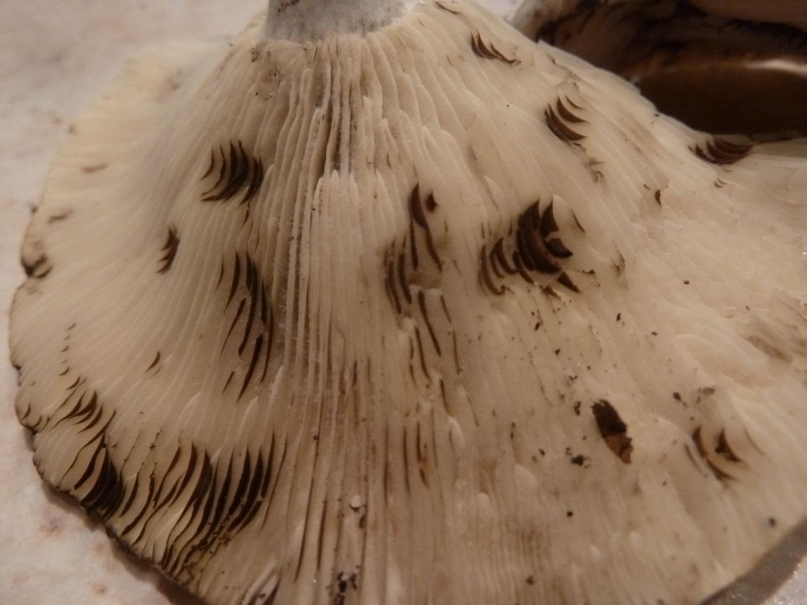 leider habe ich nur dieses lädierte Einzelexemplar an einer lichten Mischwaldstelle (alte Eichen, Buchen, Kiefern und Lärchen) gefunden. 340 Meter über NN, Weinbauklima, Lehmboden auf saurem Buntsandstein. Meines Erachtens ein Schwärztäubling, aber welcher? Da gibt es ja mehrere Kandidaten. Den dickblättrigen hatte ich vor zwei Jahren mit Harald schonmal gefunden, der scheint es nicht zu sein. Der dichtblättige kommt wohl eher in Frage, aber ich kann nirgendwo rötliche Verfärbungen feststellen. Zunächst soll der sich rötlich und dann erst schwarz verfärben.