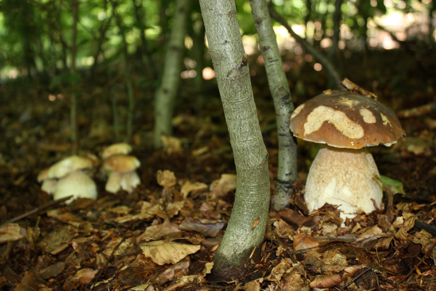 Einige herzzerreißende Grüppchen von Steinpilzen: