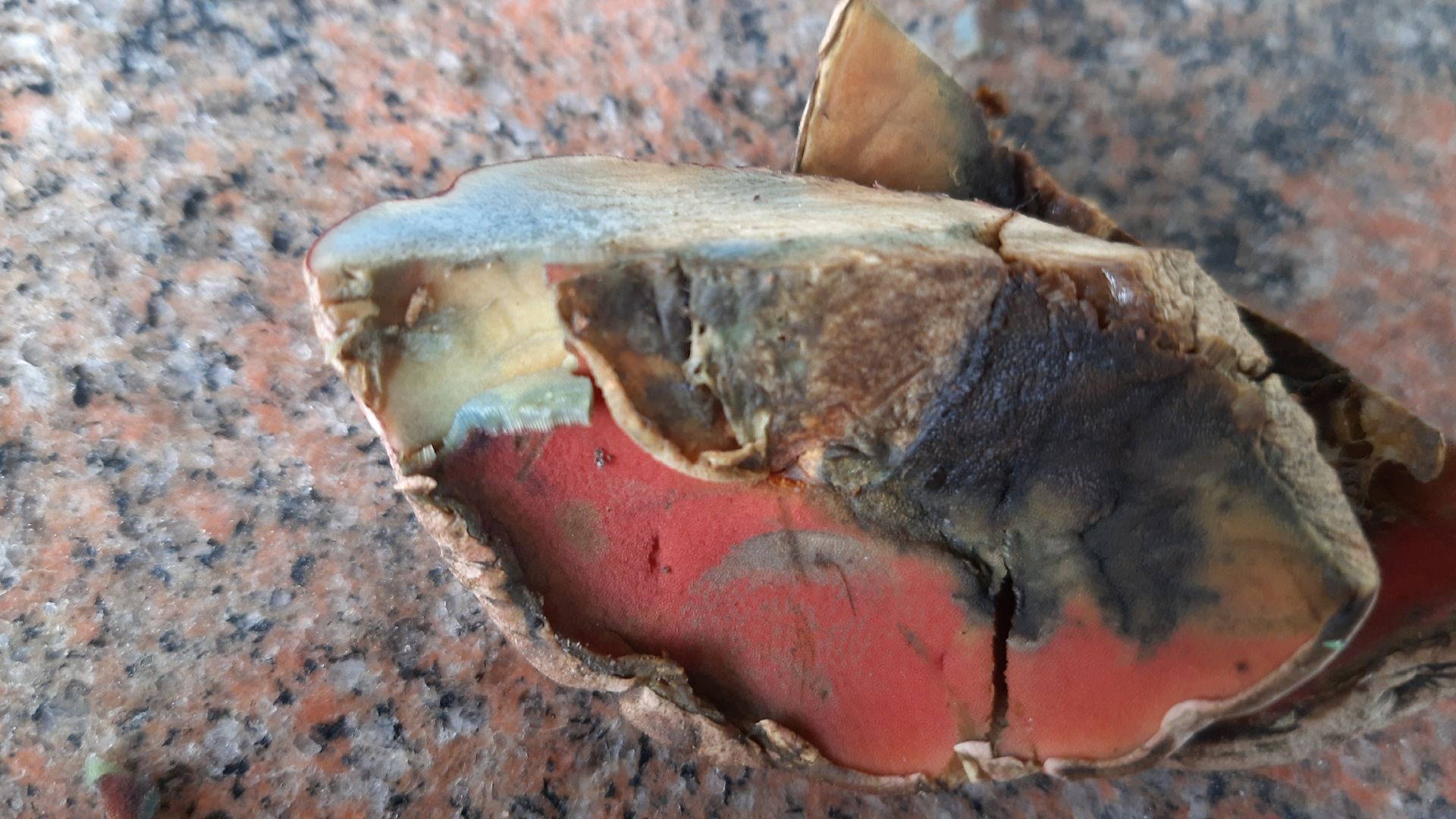 Jetzt habe ich mich etwas eingelesen und sehe, dass die weinrötlichen Flecken bei R. satanas nicht erwähnt werden, sehr wohl aber bei R. legaliae. Das schnelle und intensive Blauen finde ich für R. satanas ebenfalls ungewöhnlich.