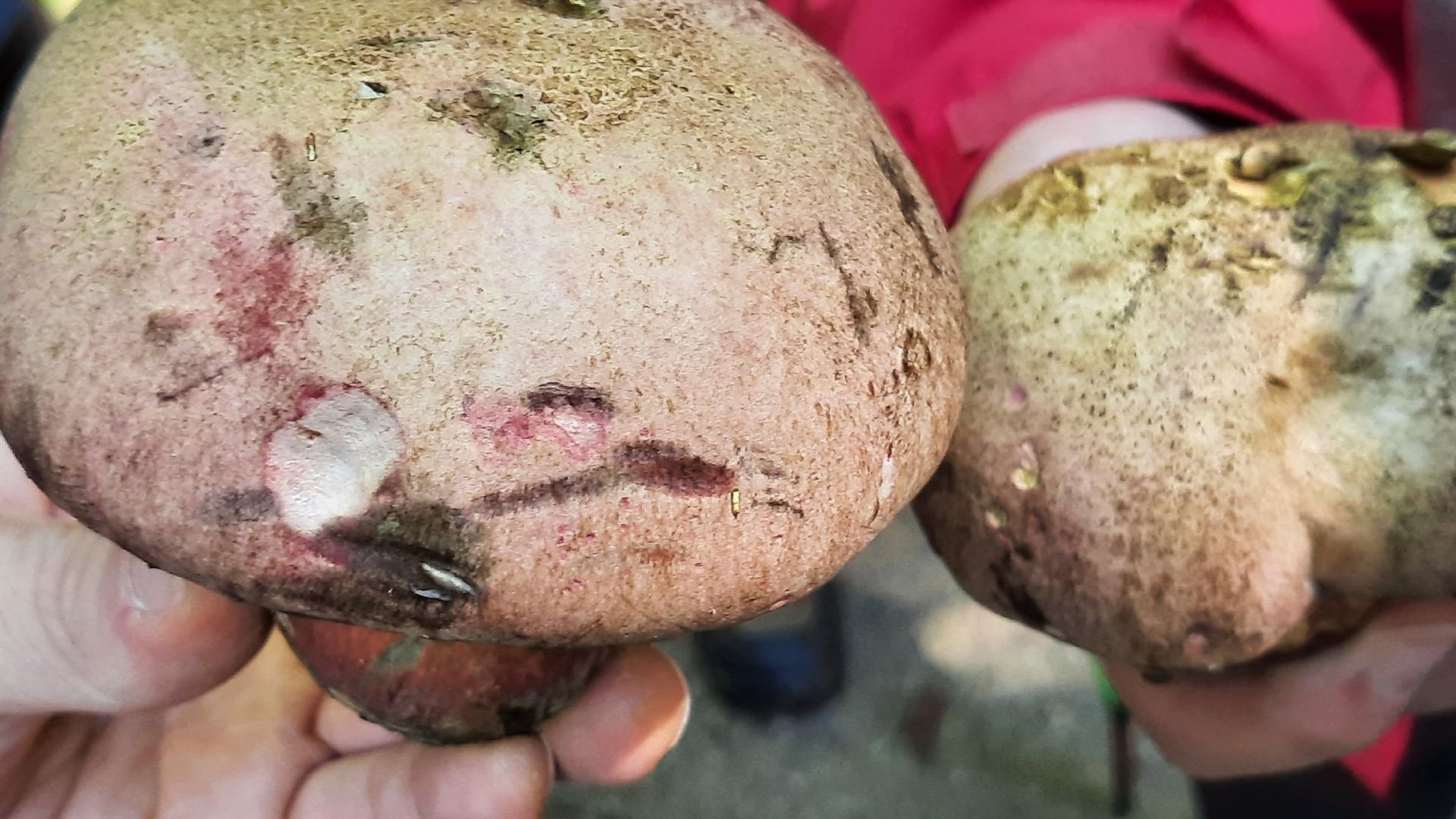 heute war ich bei einer öffentlichen Pilzwanderung im Kurpark von Bad Homburg. Mein persönliches Highlight waren diese Dickröhrlinge, die alsbald den Namen Satansröhrling verpasst bekommen haben. Ich hatte gewisse Zweifel und wegen der weinrötlichen Flecken darauf hingewiesen, dass es da noch ein paar ähnliche Vertreter in dieser Gattung gibt, wollte aber keine Diskussion anfangen, zumal ich die aus eigener Anschauung nicht kenne.