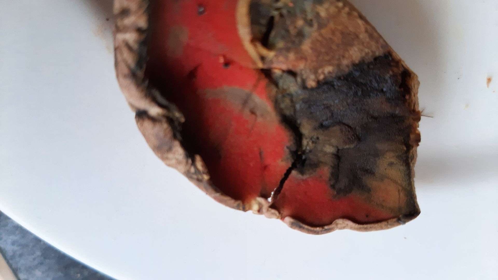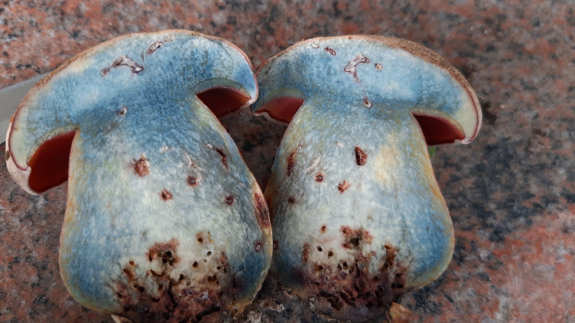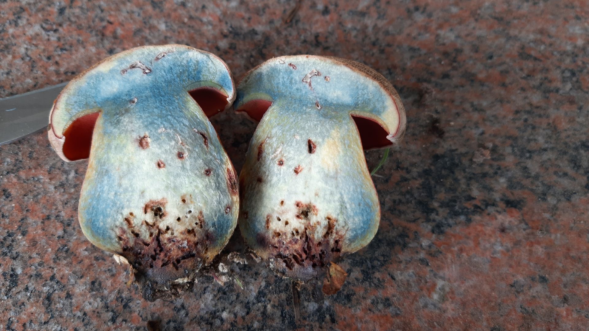 Jetzt habe ich mich etwas eingelesen und sehe, dass die weinrötlichen Flecken bei R. satanas nicht erwähnt werden, sehr wohl aber bei R. legaliae. Das schnelle und intensive Blauen finde ich für R. satanas ebenfalls ungewöhnlich.