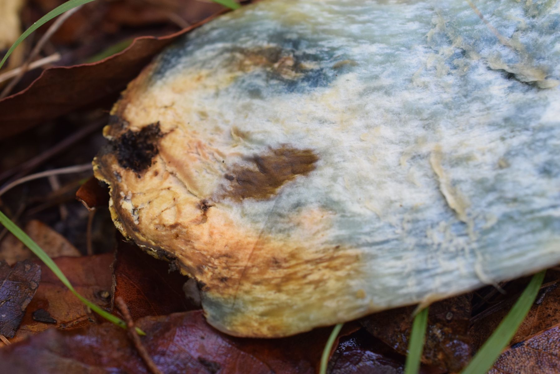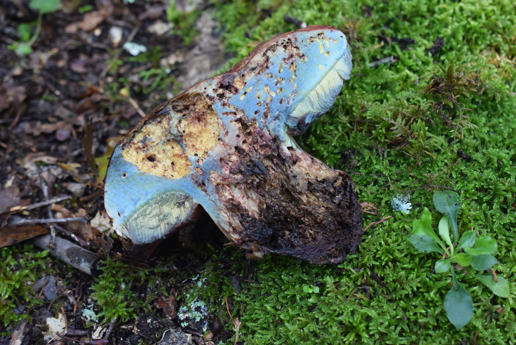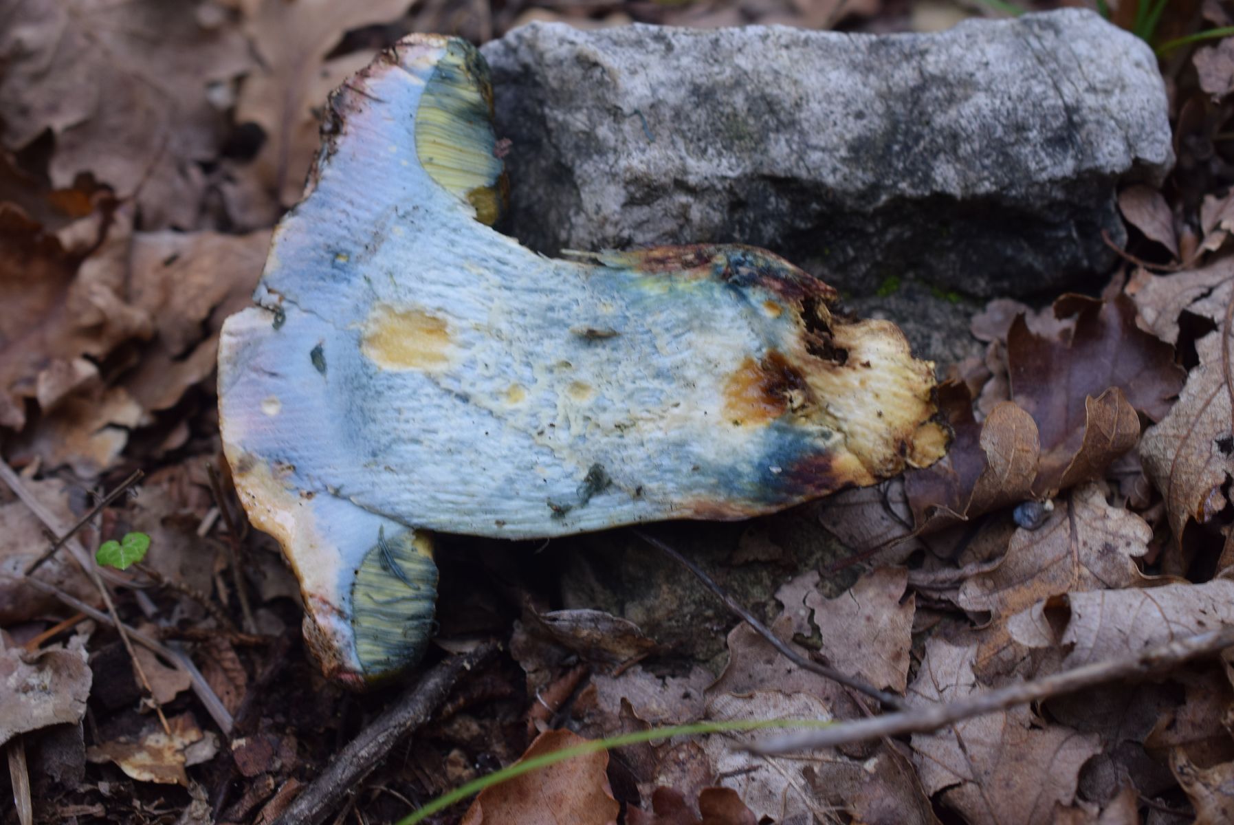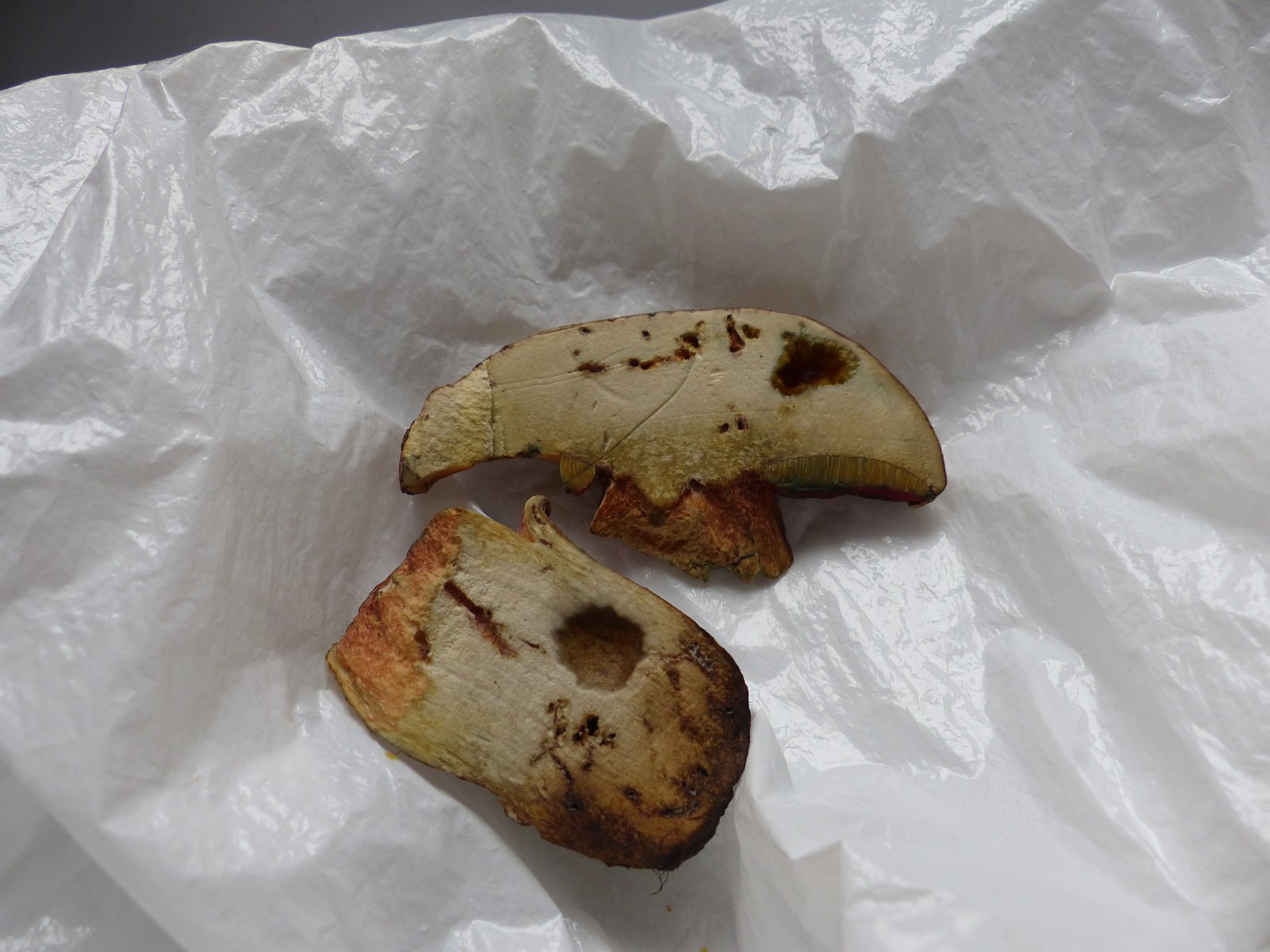Sehr interessant! Es ist wohl nicht ausgeschlossen, dass da noch andere Myzelien Fruchtkörper hochgeschoben haben. Die von mir hastig (während der Abschlussbesprechung sind wir zu dritt im Schweinsgalopp hin zur Fundstelle und wieder zurück, weil wir möglichst wenig versäumen wollten) aufgesammelten Fruchtkörper wuchsen praktisch neben Caloboletus radicans. Bei flüchtiger oberflächlicher Betrachtung (von oben, nicht abgeerntet!) kann man die leicht verwechseln, erst recht gilt das dann für noch näher verwandte Arten.