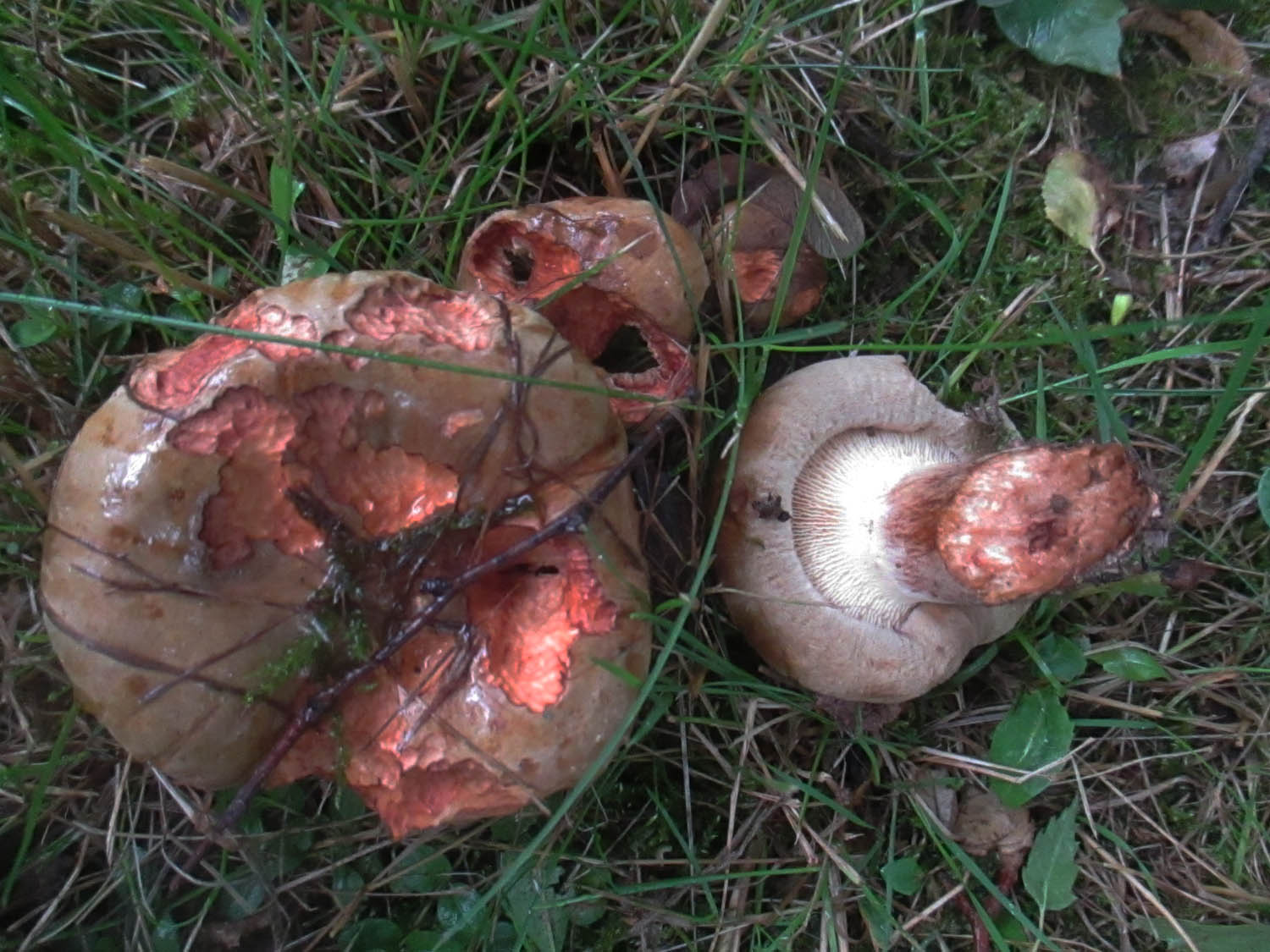 Kurz vor meinerm Haus haben sich dann noch Große Kremplinge (Paxillus validus) gezeigt