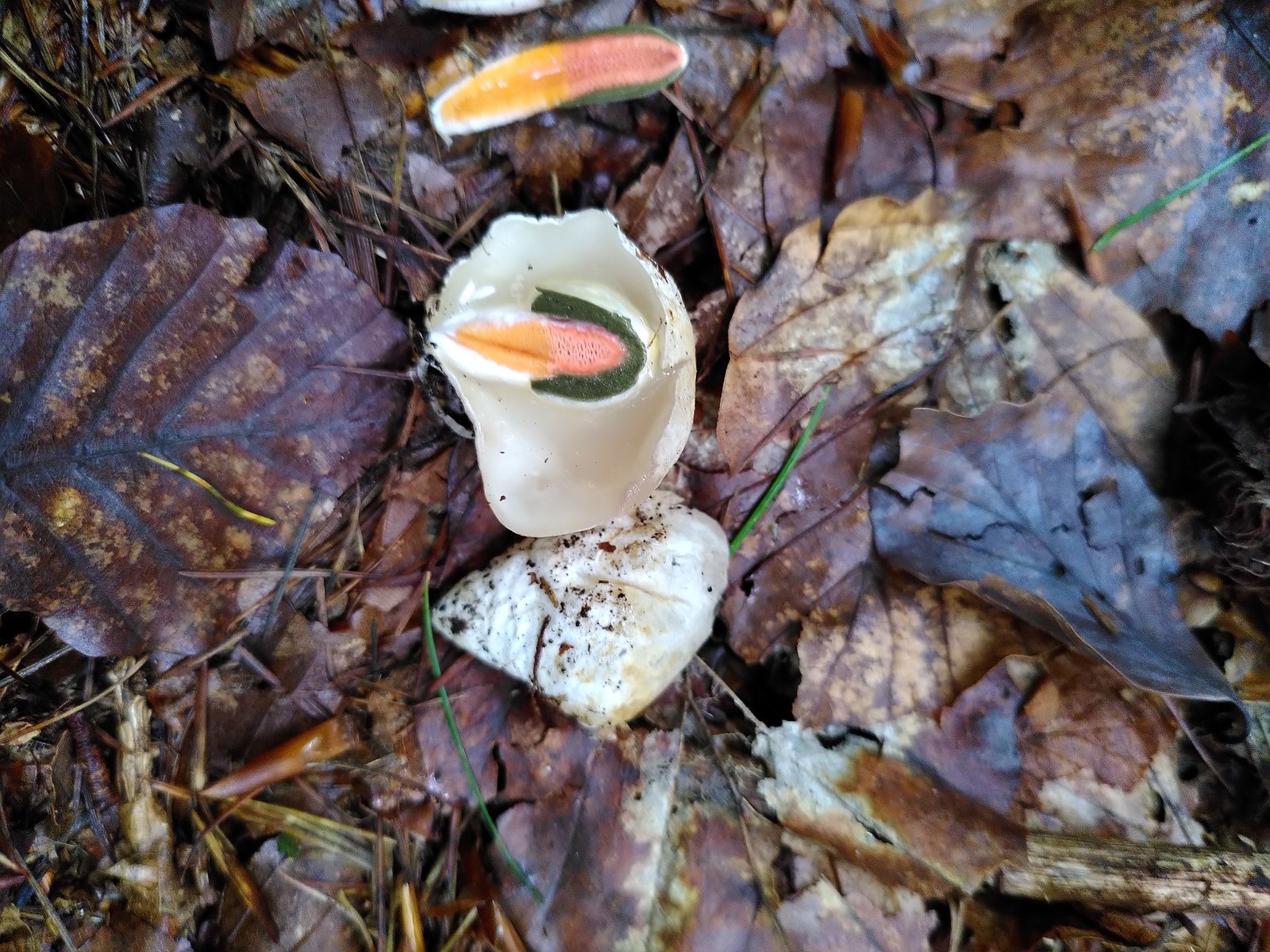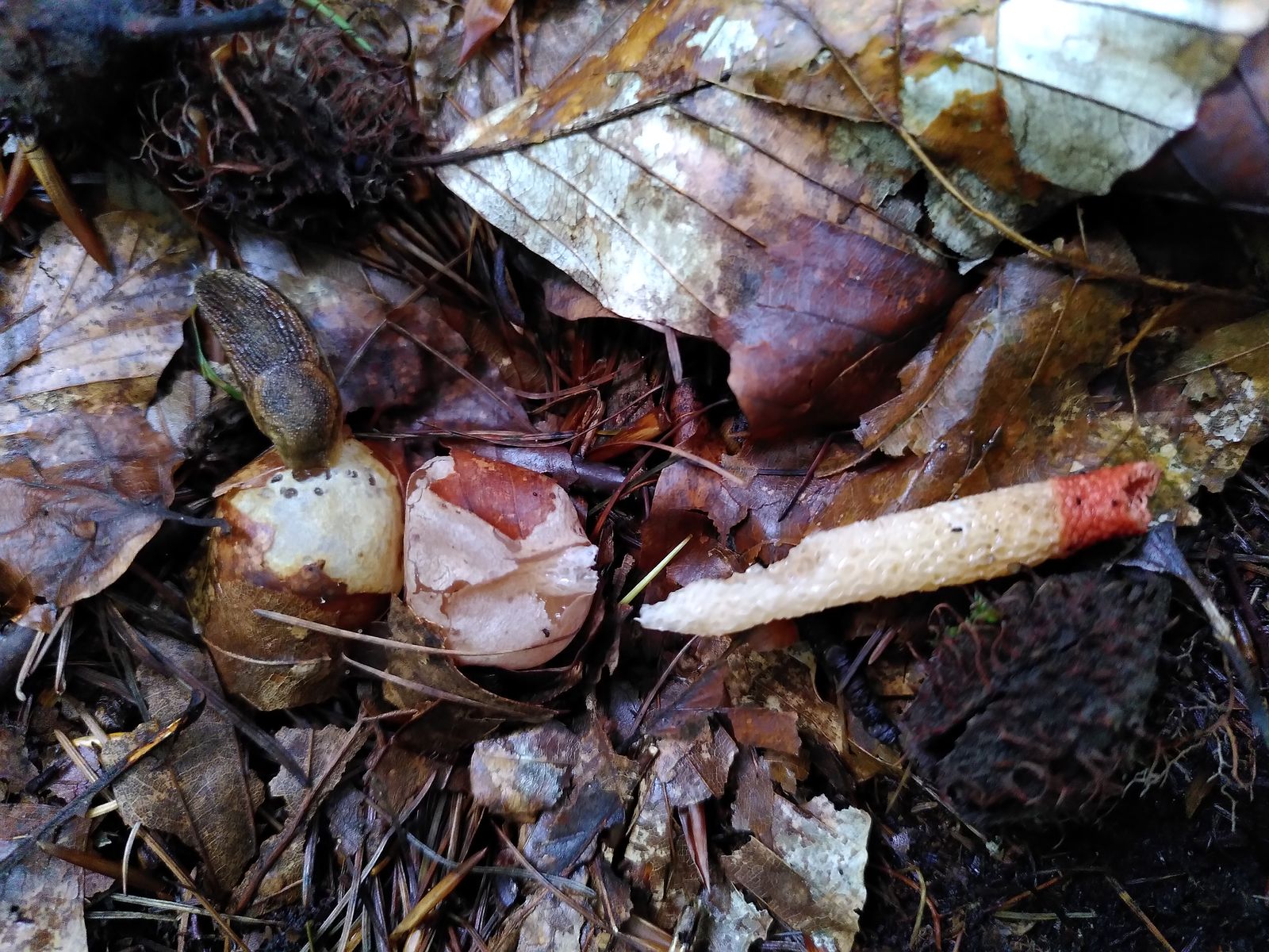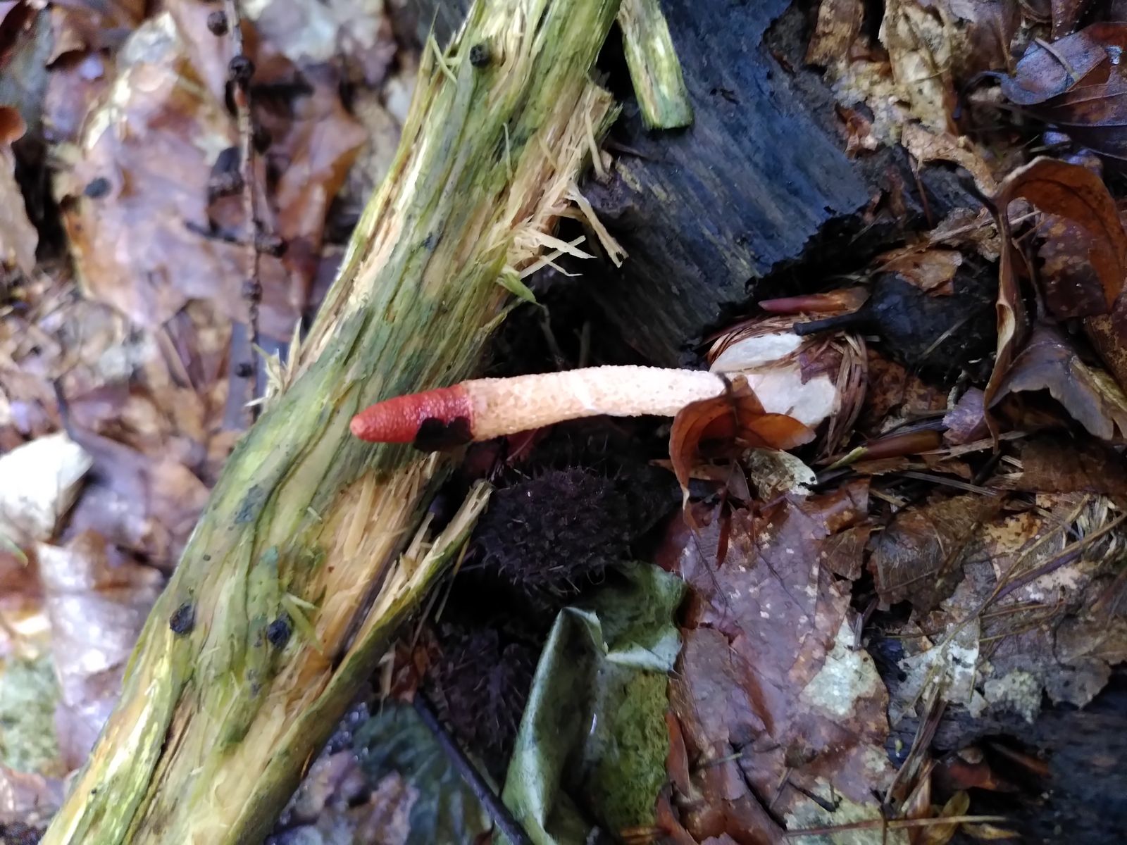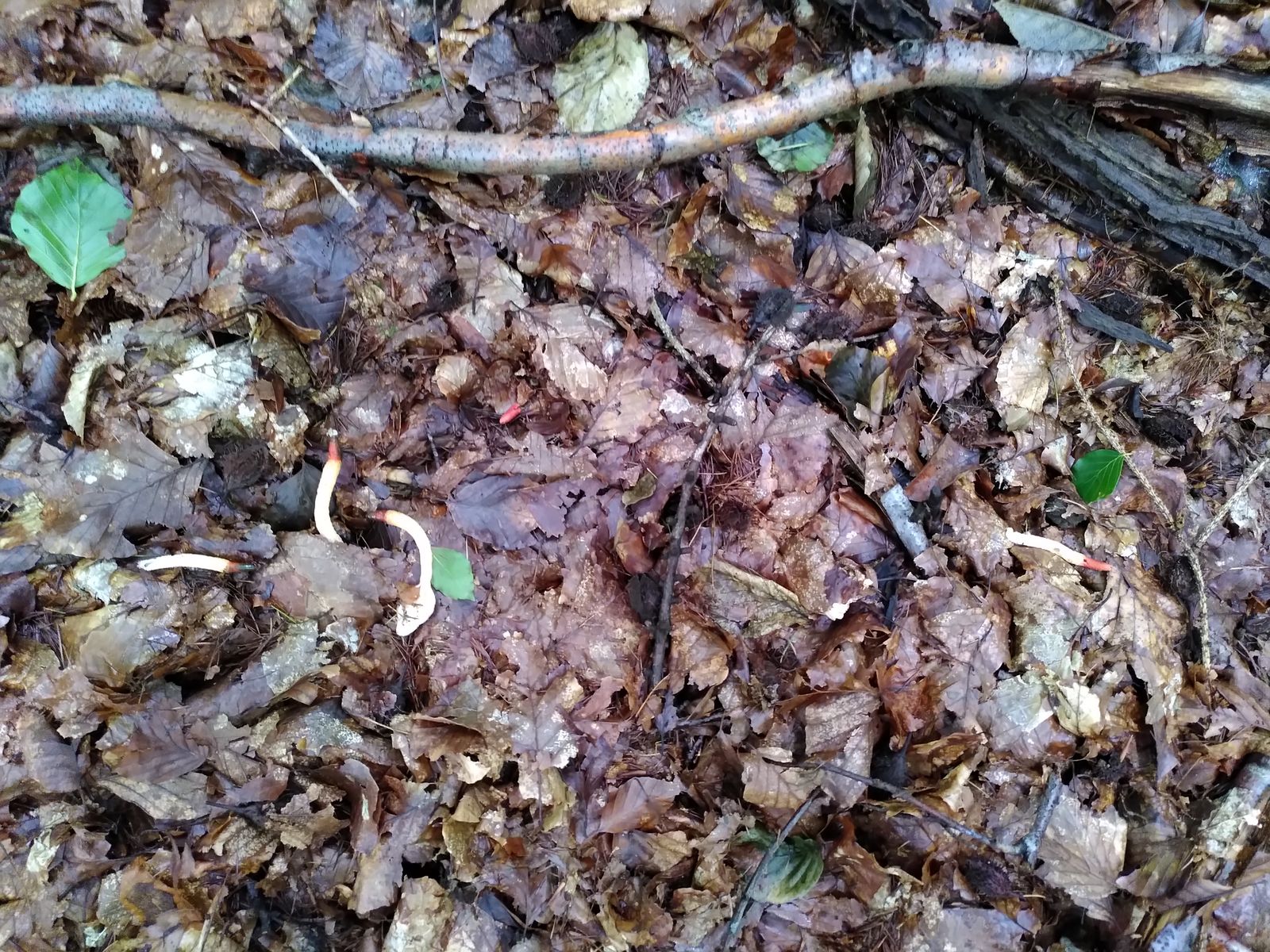 diesen Fund konnte ich im Laubmischwald machen, das Hexenei war maximal 2cm groß. Am Fundort wuchsen ca. 10 Exemplare. Bei der Gattung Mutinus bin ich mir ziemlich sicher, aber dann komme ich ins Schwimmen. Kann man andere Hundsruten sicher ausschließen? Der Stiel wirkt schon eher gelblich während er bei M. ravenelii und M. elegans rötlich sein müsste. Würdet ihr die auch M. caninus nennen?