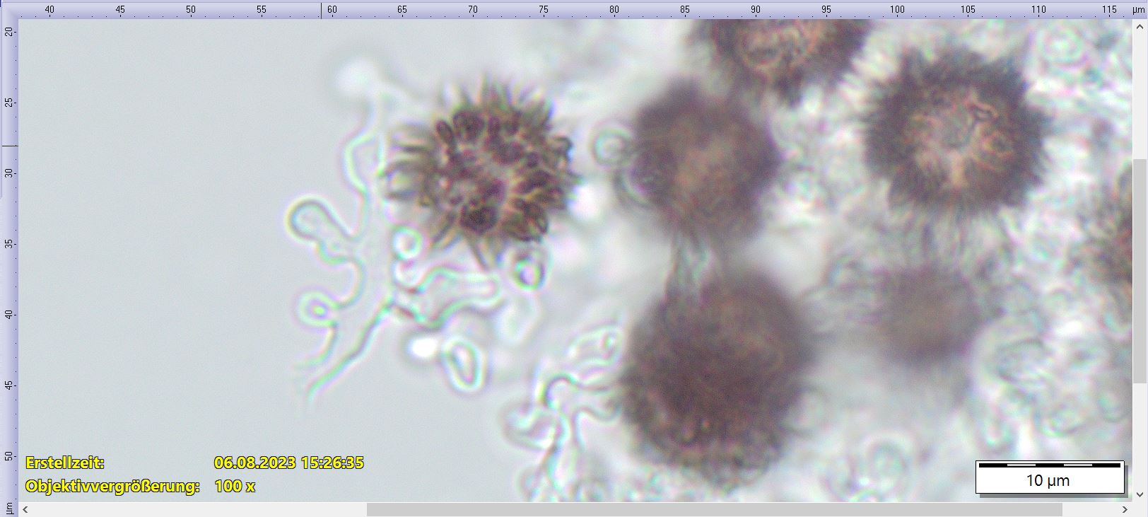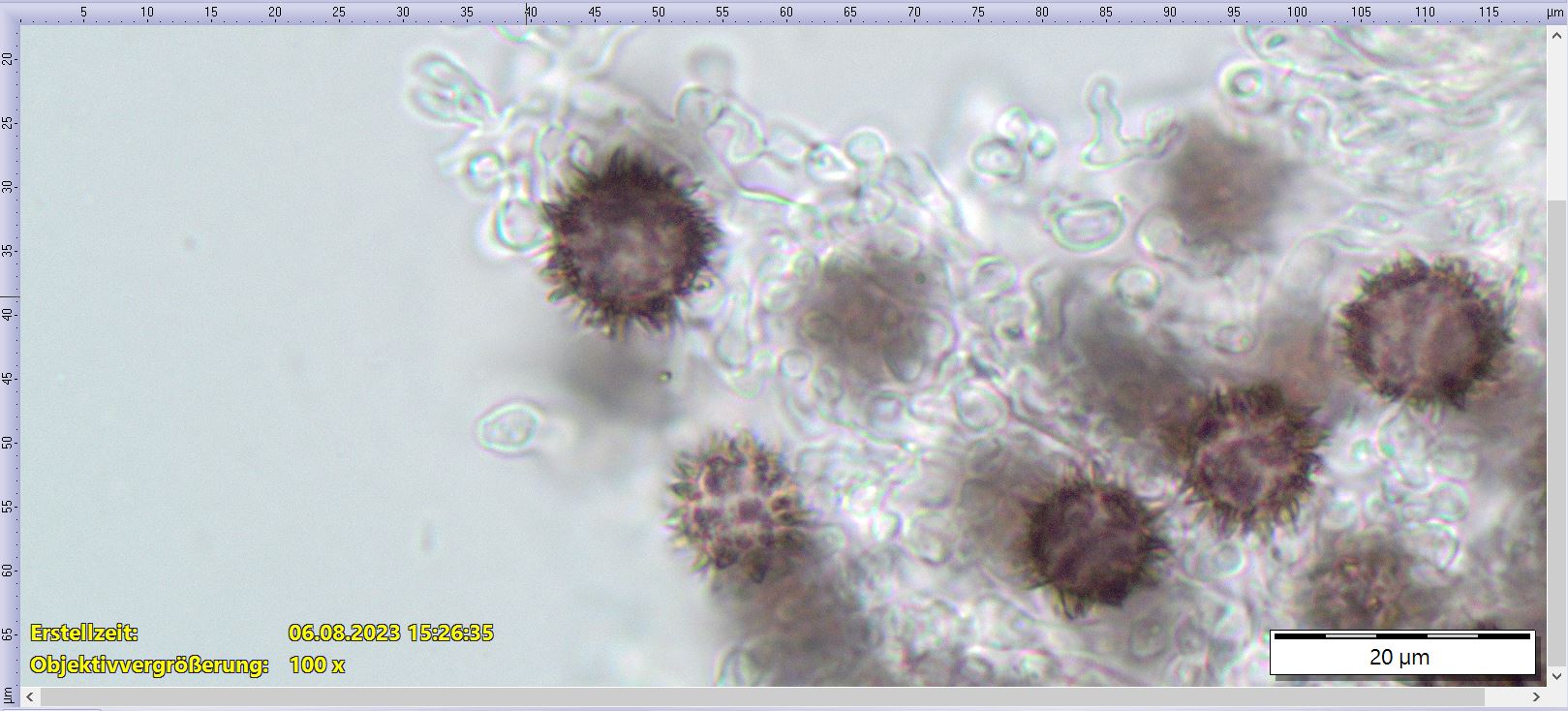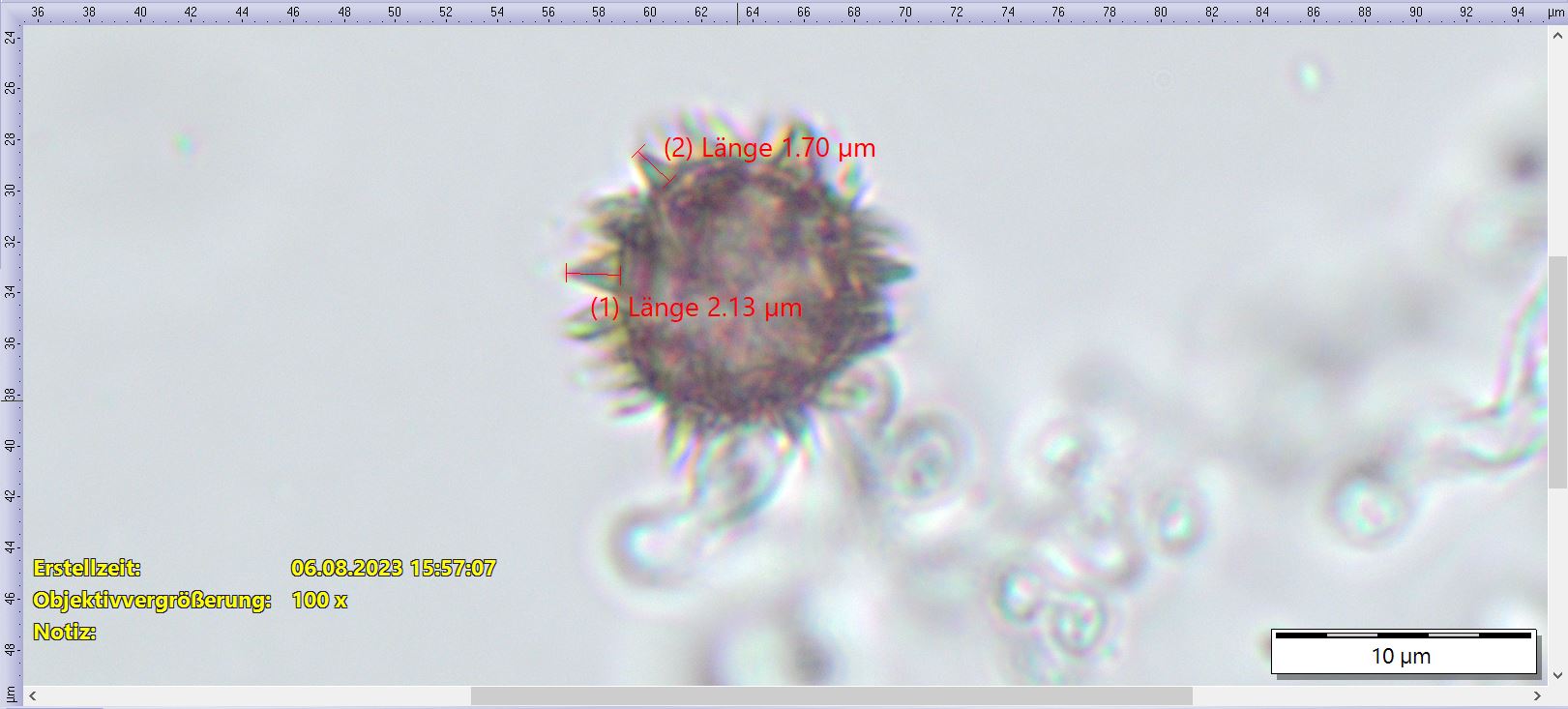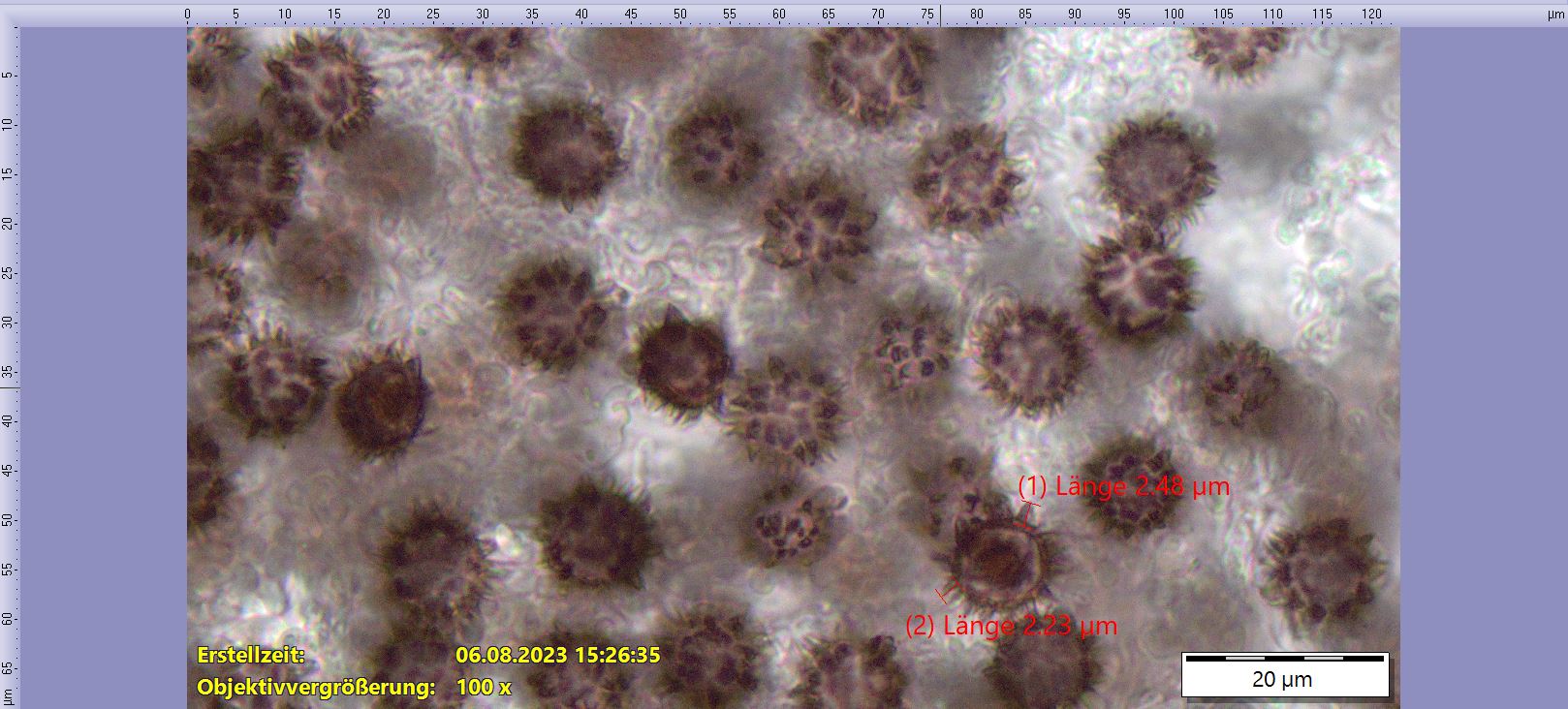 Die Sporen sind im Schnitt unter <10µm aber ich kann mir gut vorstellen -> Die Sporen sind noch nicht reif genug und daher noch etwas kleiner.