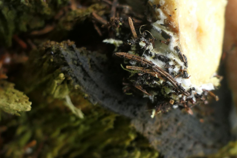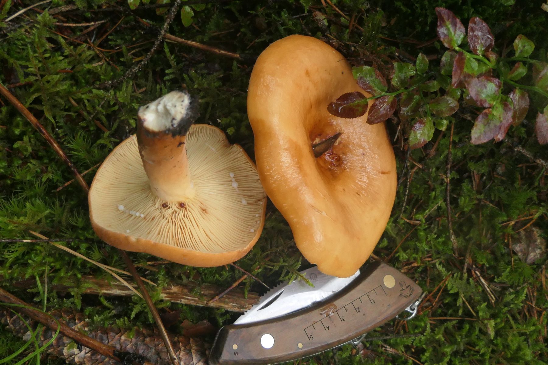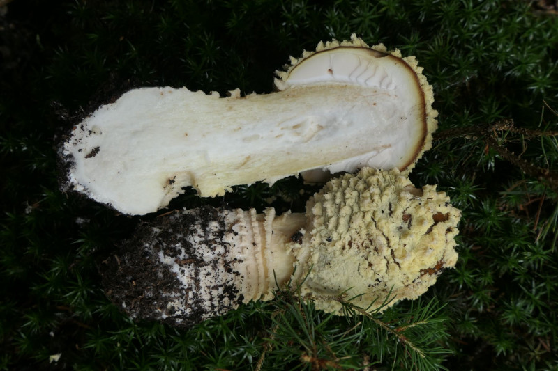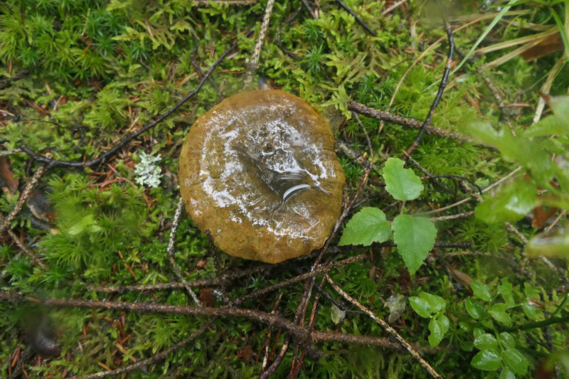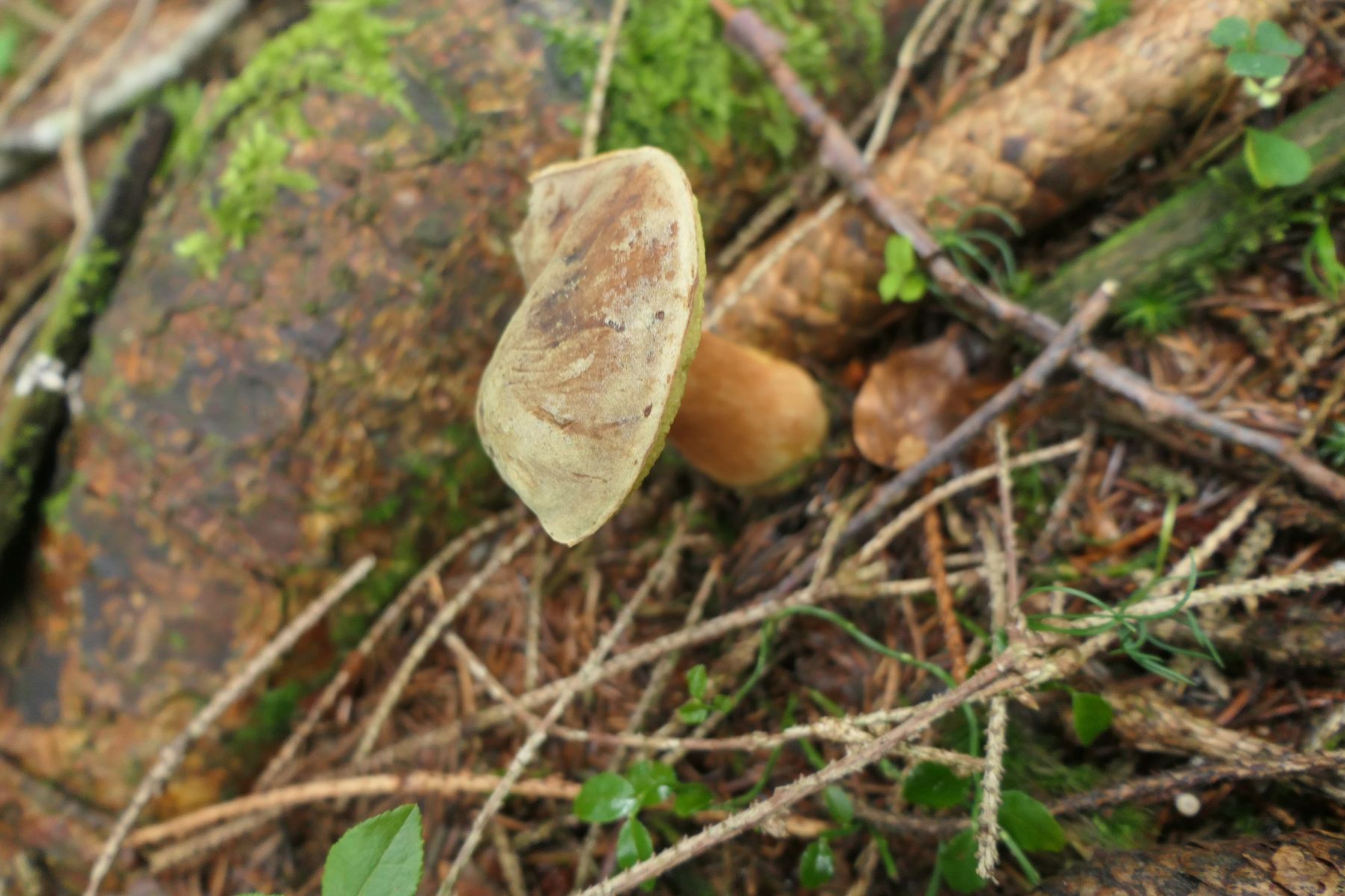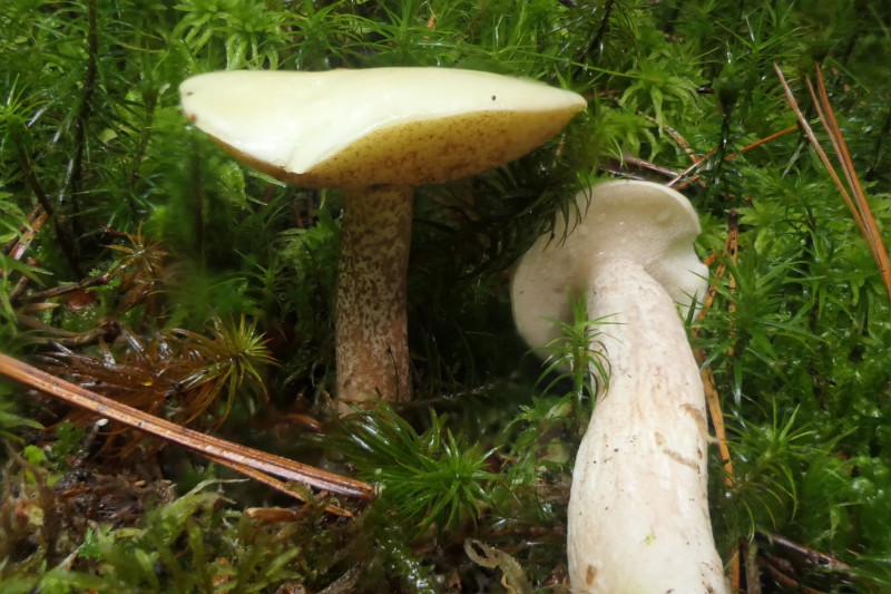 Sehr gefreut habe ich mich über 02 Suillus placidus - der Elfenbeinröhrling an fünfnadeliger Kiefer. Im selben Habitat aus dem ich diesen schon kannte aber an anderer Kiefer! Nur zwei kleinere Fruchtkörper, nicht auszuschließen, dass da jetzt noch einiges nachkommt.