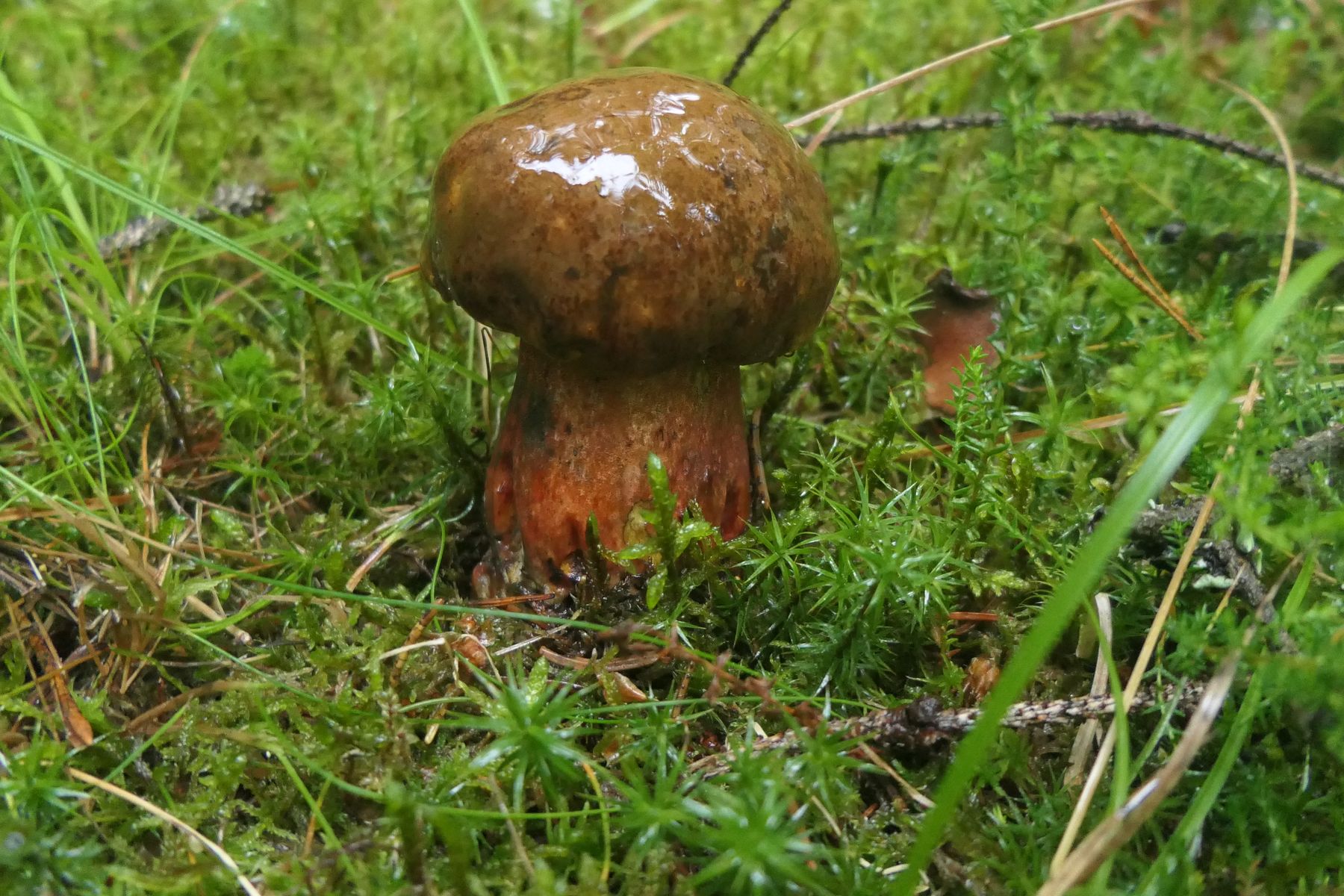 Editz, da das Stielnetz keine ganz große Rolle spielt (Danke an Thomas) doch am ehesten Xerocomus ferrugineus - der braunhütige Filzröhrling (der hier ziemlich olivhütig daherkommt, was er aber auch kann).