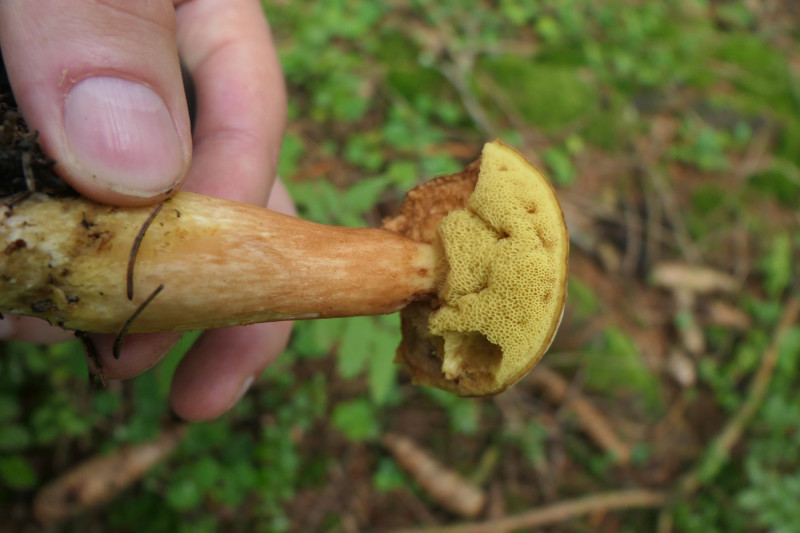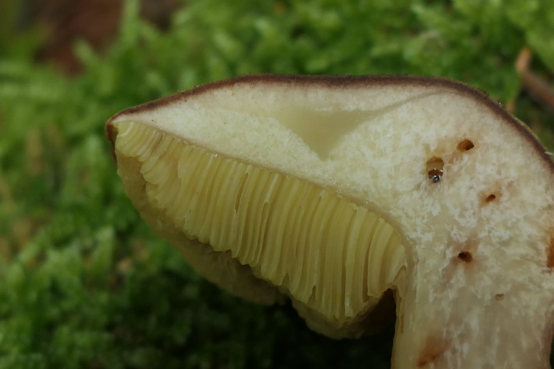 06 Xerocomus subtomentosus - die Ziegenlippe (blaute null, auch nach längerer Zeit nicht im Schnitt, zeigt eher gelbes Myzel, zwischenzeitlich dachte ich daher schonmal an ferrugineus, aber so ganz ohne Stielnetz?)