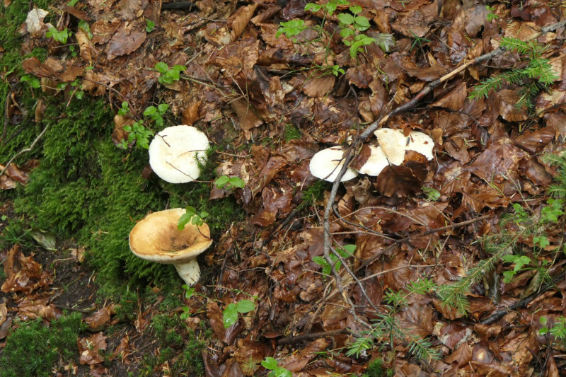 08 Lactarius spec. - nicht näher bestimmt, dachte erst an den Eichenmilchling, vermisste dann aber den durchaus bekannten Blattwanzengeruch (eher süßlich) und habe auch die Milch nicht mehr getestet (Farbreaktion und geschmacklich). Ansonsten Eichen und Fichten in der Nähe.