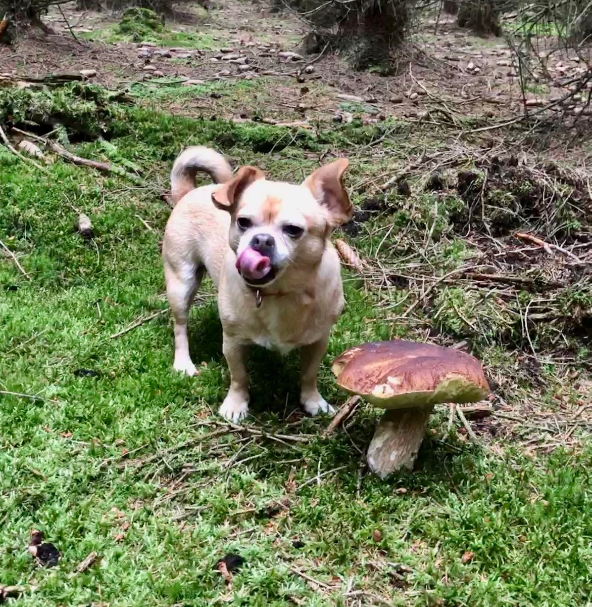 Habe vorgestern auf der Gassi Runde mit Fiasko wieder "such den Pilz" gespielt (ich gebe es nicht auf, dass endlich mal ein vierbeiniger Spürhund mit auf die Pirsch kommen wird) und siehe da....