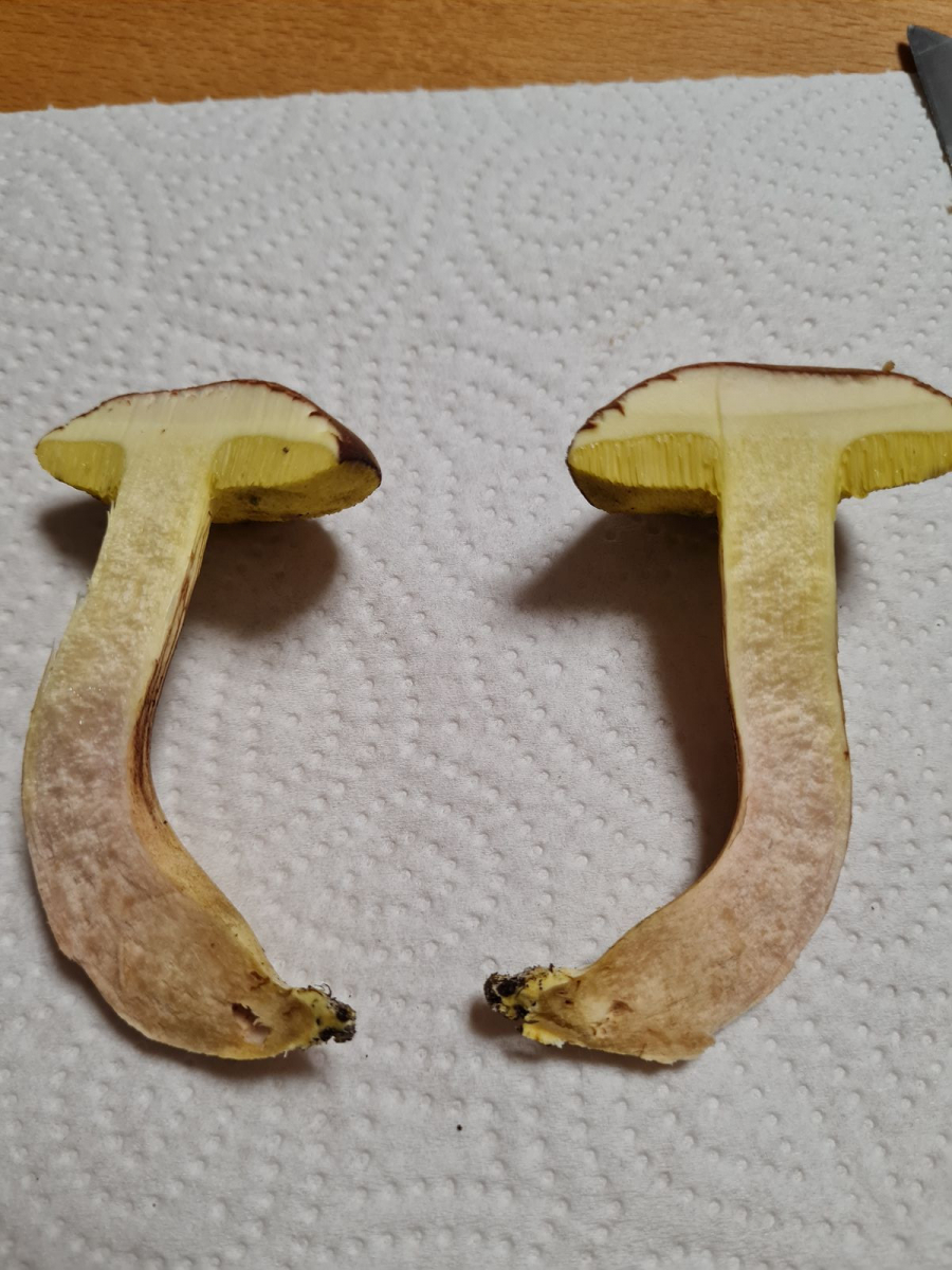besonders interessant wäre in diesem Fall, ob karottenrote Punkte in der äußersten Stielbasis vorhanden sind. Die äußerste Stielbasis fehlt aber leider bei deinem Anschnitt.