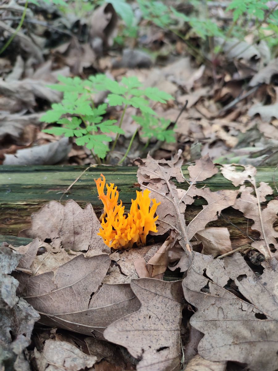 Hier kommt man kurz ins Grübeln, denn man sieht hier eigentlich viele Hinweise auf Laubholz, nur der hier gezeigte Fk. passt nicht wirklich zu dem Laubholzhörnling (Calocera cornea).
