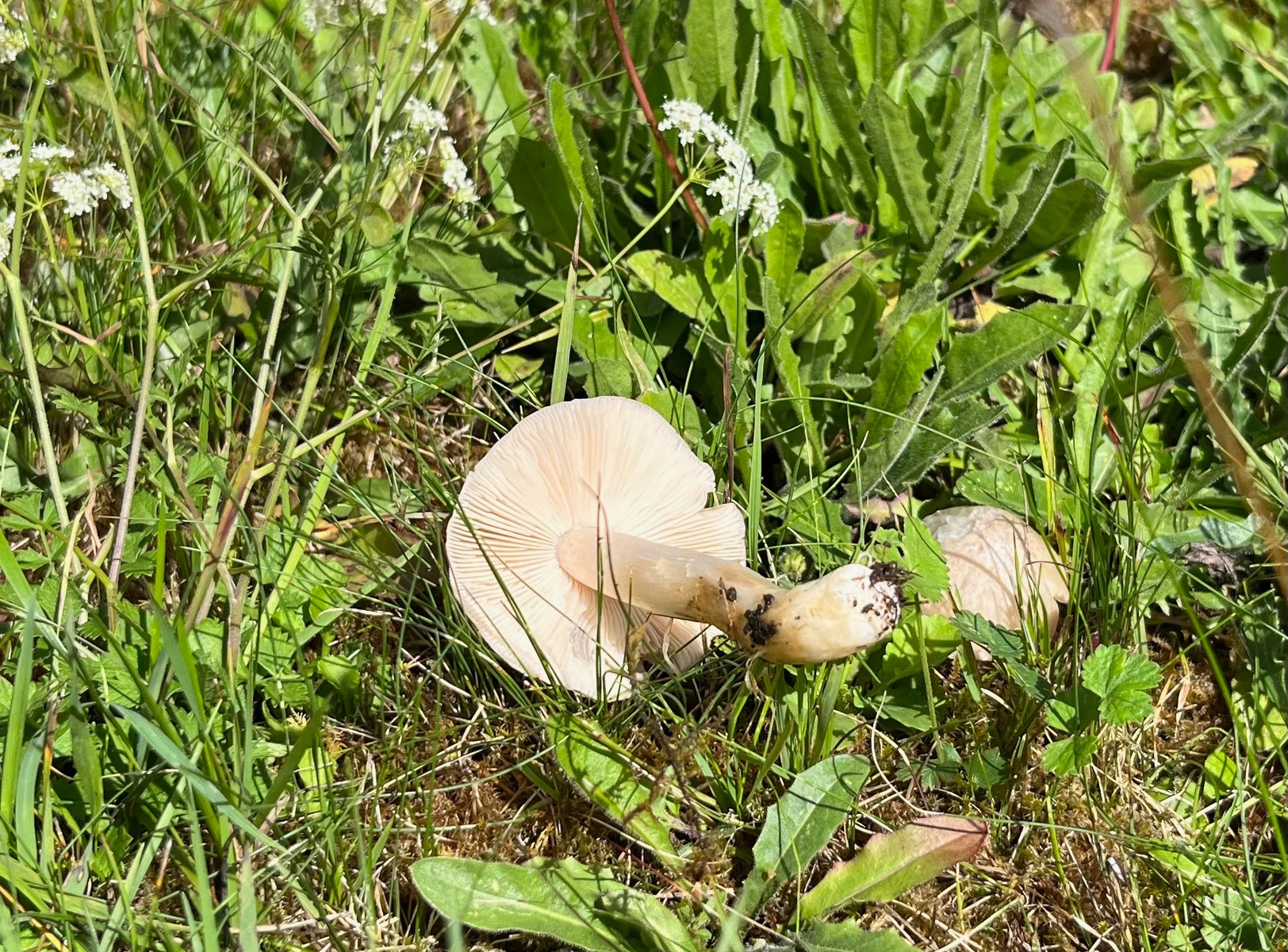 8. Diese Entoloma-Art ist Neuland für mich. Die drei verbliebenen Fruchtkörper müssen noch ein bisschen wachsen, um das Bild der Art abzurunden. Ich schau mir die übermorgen noch einmal an. Ein auffälliger Geruch ist nicht wahrnehmbar, der Stiel ist hohl und sehr brüchig. Vielleicht hat ja jemand einen Tipp🥴. Wenn frau in der falschen Gattung sucht, findet sie eben nicht die passende Art. Gerade habe ich den Pilz aus der Pilzdose genommen. Ein würziger Duft nach Schwimmbecken. Also haben wir es hier mit dem ersten Saftling des Jahres zu tun - dem Nichtrötenden Nitratsaftling - Hygrocybe nitrata.