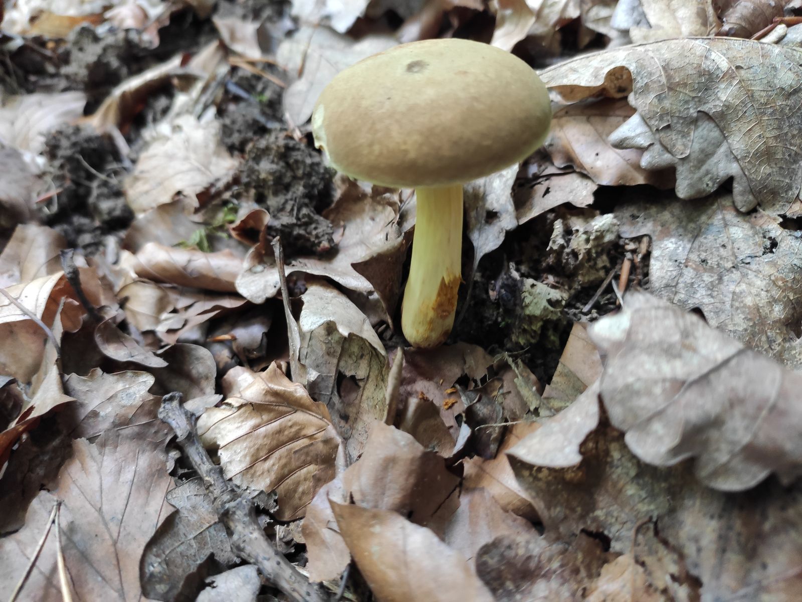 zunächst vorab, ich bin noch immer blutige Pilzanfängerin. Daher seid bitte gnädig mit mir. Ich habe heute in einem ehemaligen Mischwald, mittlerweile jedoch Laubwald mit Eichen und Buchenbestand die 4 nachfolgenden Pilze gefunden. Die drei kleiner standen separat zum größeren und ich bin nicht sicher, ob sie die gleiche Sorte sind. Ich habe nicht vor die Pilze zu essen, würde mich aber über eure Einschätzung freuen.