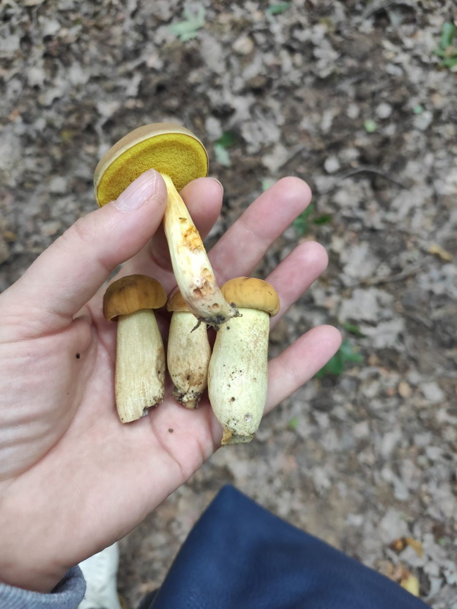 zunächst vorab, ich bin noch immer blutige Pilzanfängerin. Daher seid bitte gnädig mit mir. Ich habe heute in einem ehemaligen Mischwald, mittlerweile jedoch Laubwald mit Eichen und Buchenbestand die 4 nachfolgenden Pilze gefunden. Die drei kleiner standen separat zum größeren und ich bin nicht sicher, ob sie die gleiche Sorte sind. Die Kappen der Pilze sind trocken und in keiner Weise schleimig. Die Konsistenz ist fest und sie wirken eher trocken, obwohl sie noch sehr jung scheinen. Ich habe nicht vor die Pilze zu essen, würde mich aber über eure Einschätzung freuen.