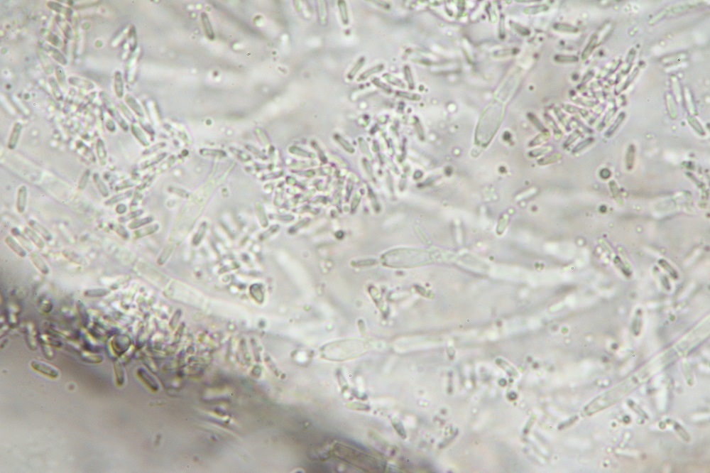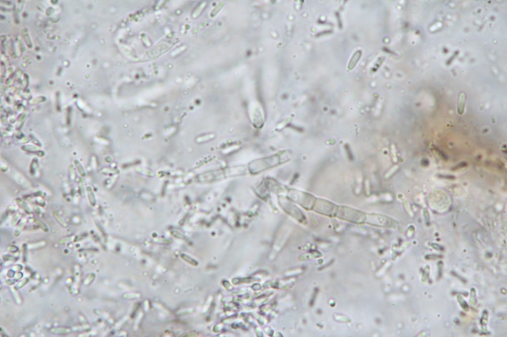 1. die Pyknidien (schwarze Punkte), die im blau/grünen Bereich sind, dass ist eine andere unbekannte Anamorphe