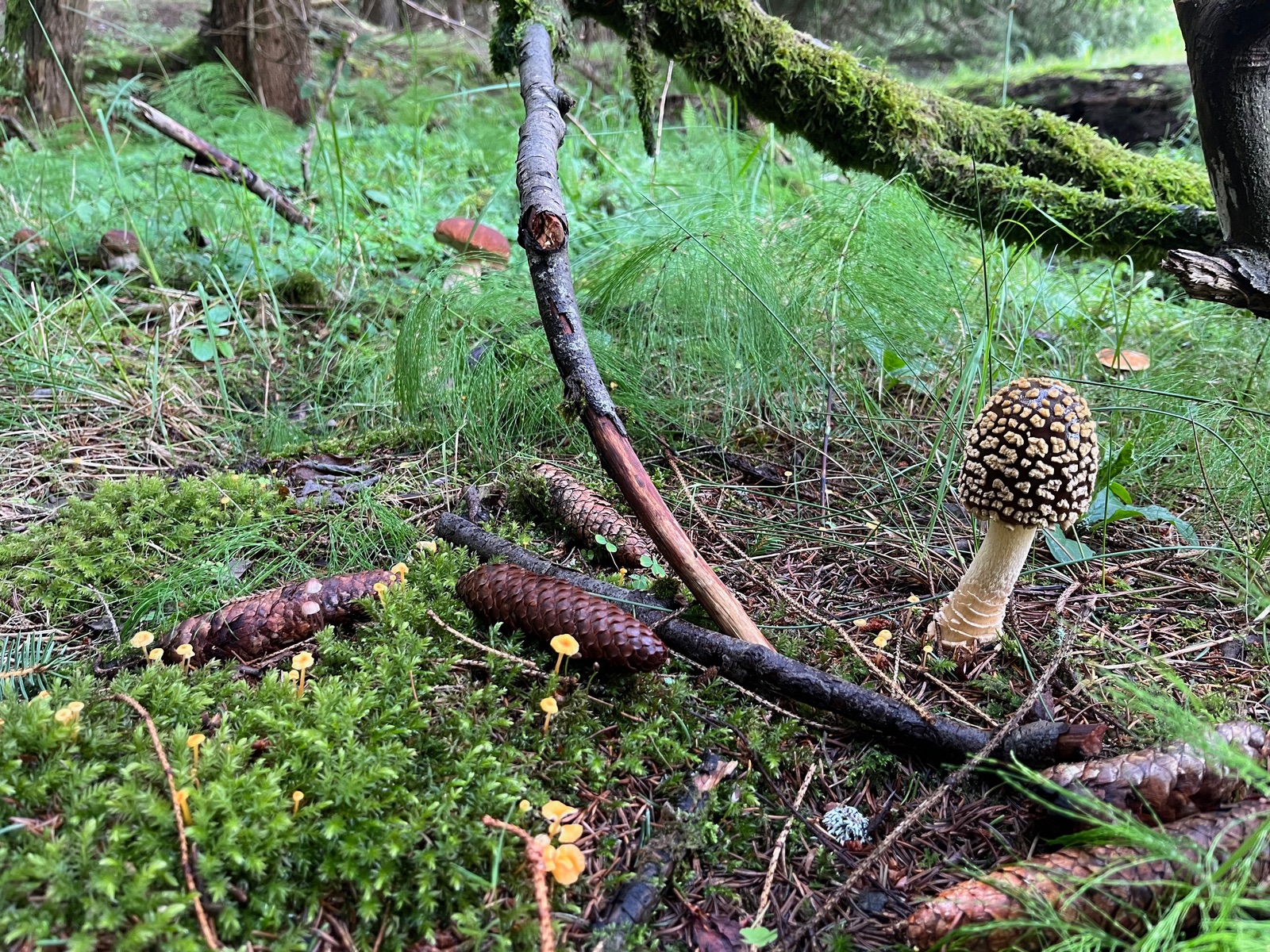 in der Hochzeit von Amanita regalis, dem Königsfliegenpilz, begegnet mir diese Art täglich. Deshalb ist sie für mich nichts Besonderes. Wenn dann Karl W z.B. beim Onlinetreffen anmerkt, dass er für so einen Pilz gern auf alle Steinpilze verzichten würde (vermutlich meint Karl die Tagesausbeute 🥴) erscheint mir das recht seltsam.