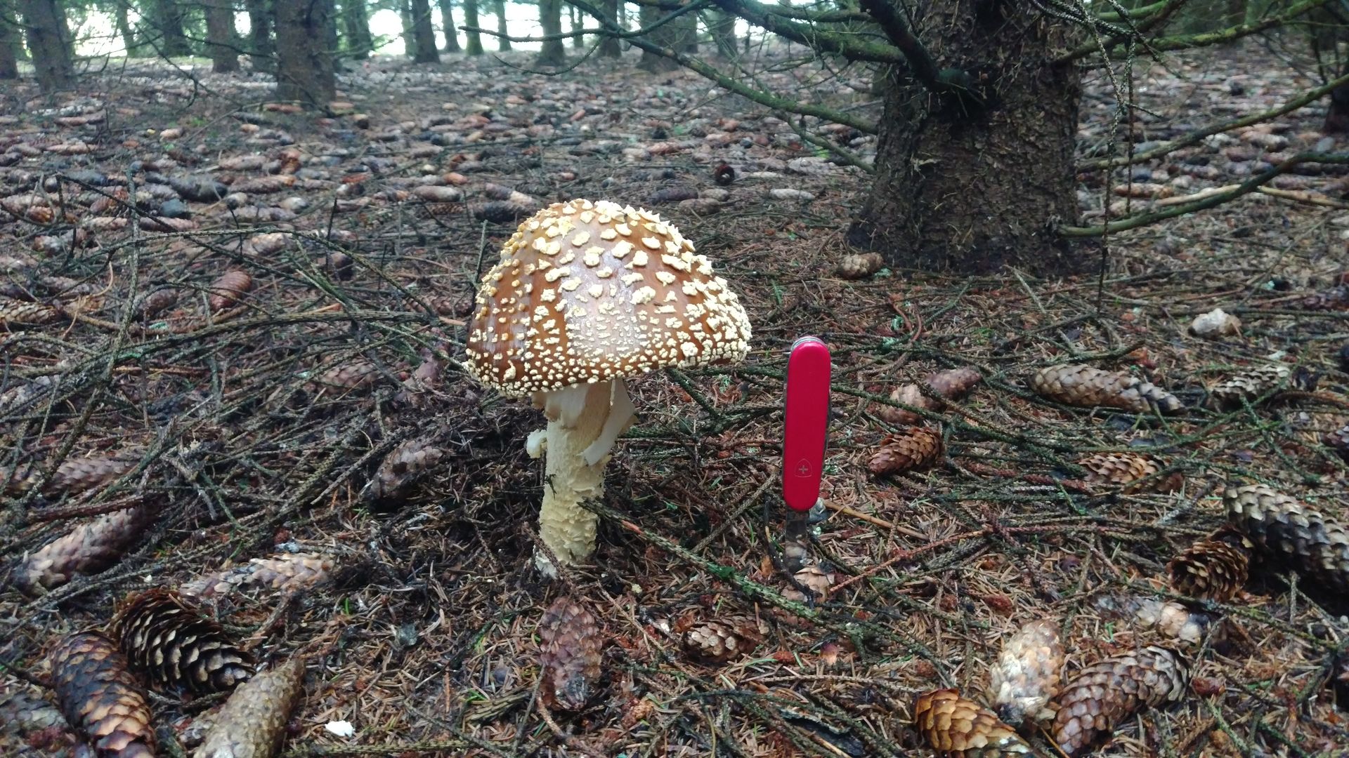 • Da ich gerade in Schweden unterwegs bin und mir dieser Pilz täglich massenhaft begegnet in meist sehr großer Größe füge ich hier auch noch ein paar Fotos an.