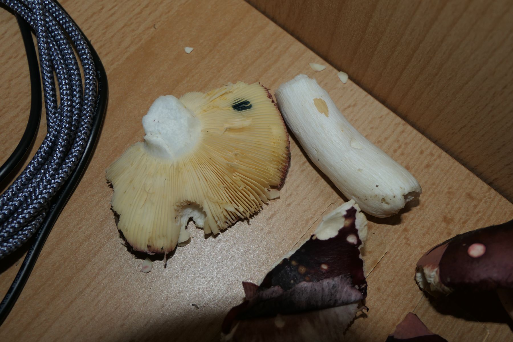 Sehr wegweisend auch die Guajakreaktion - Stiel null (auch nach 1 Minute!), Lamellen +++ nach 8 Sekunden. Wirklich eindrücklich.