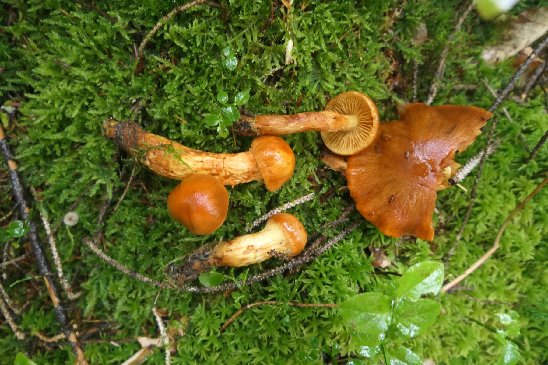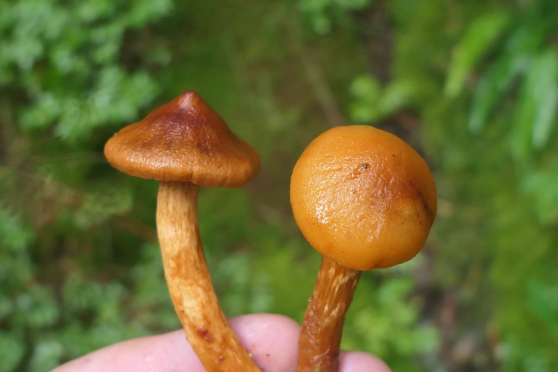 Ganz in der Nähe dann dass: Ich sehe hier 13 Cortinarius orellanoides - der spitzgebuckelte Raukopf (links und dann im Vergleich mit rechts limonius)