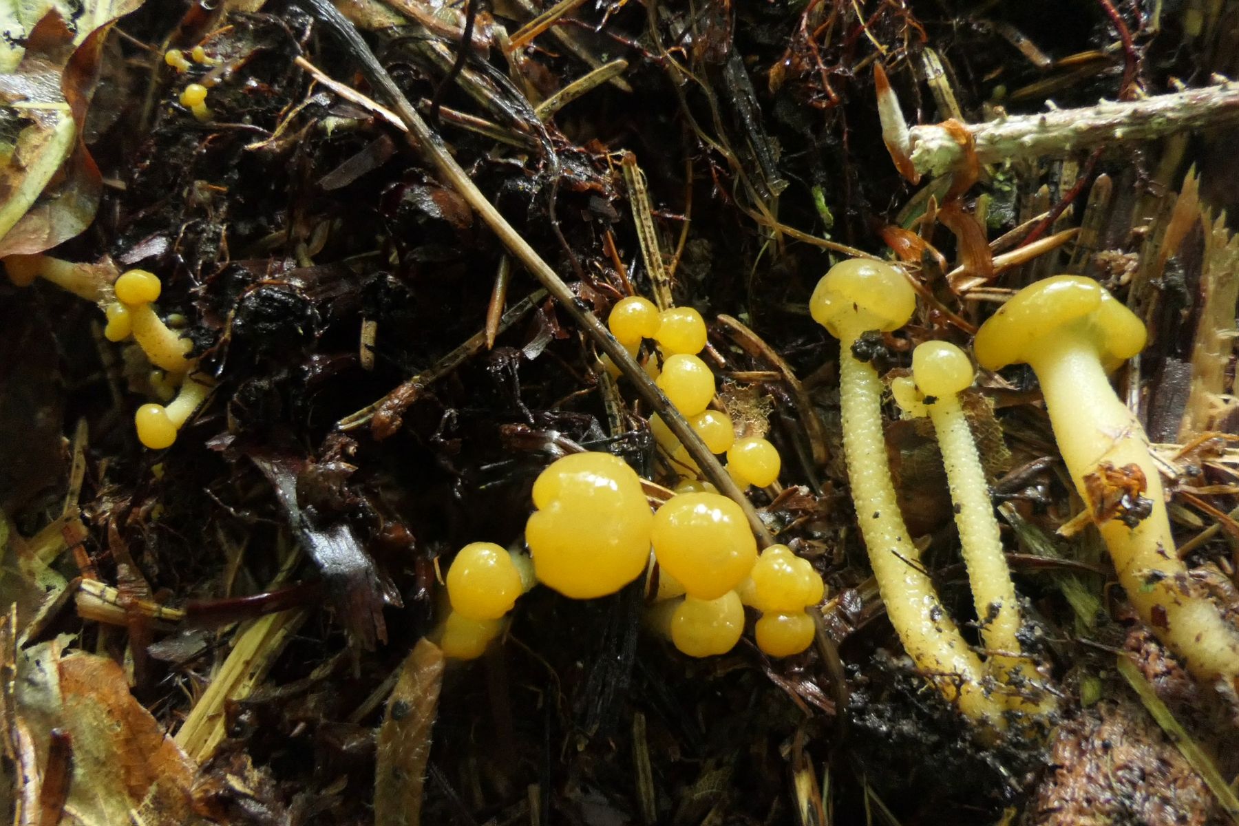 Bis zum letzten Tag haben sich die Elfenbeinröhrlinge Zeit gelassen, um nochmal richtig durchzustarten. Heute stand das Habitat voll mit Fruchtkörpern und mir machte eine Gruppe nochmals besondere Freude zum Abschluss: