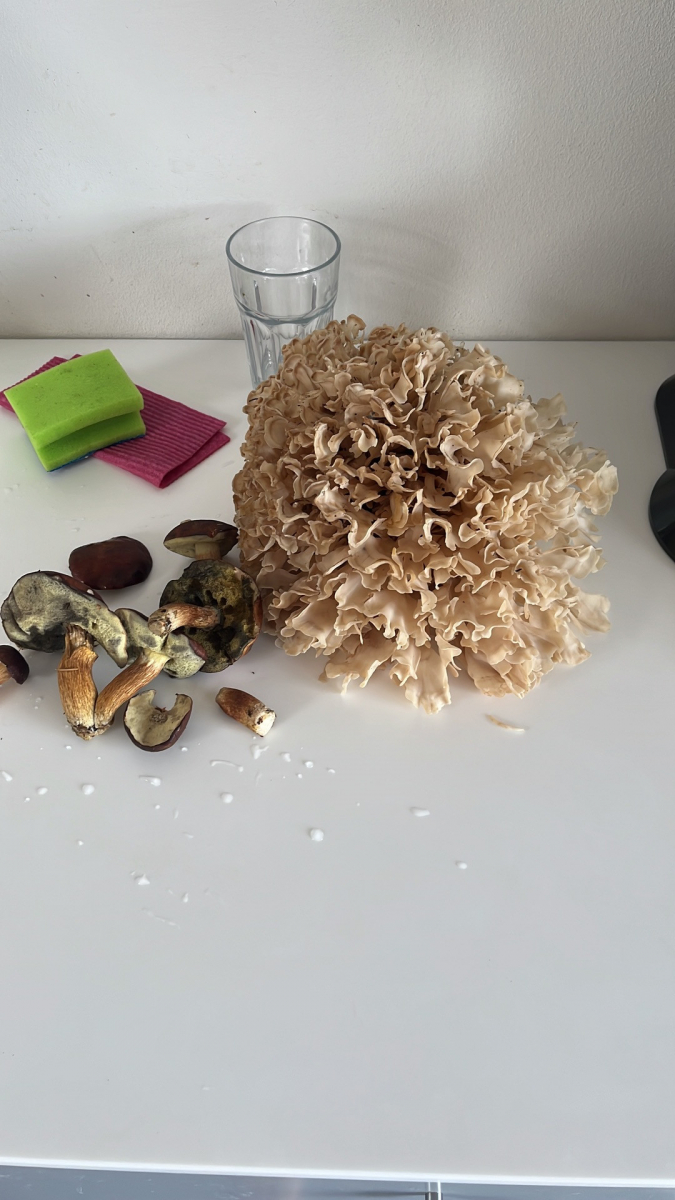 Gleich vorab: ich wusste weder, dass es eine breitblättrige Glucke gibt, noch dass sie gefährdet ist. Ich habe von der einen ca. 1/4 abgelöst, in der Annahme, es wäre eine krause Glucke. Ich habe nur ein Stückchen rausgenommene, da der Pilze derart riesig ist. Bitte verzeiht, falls es sich um eine breitblättrige Glucke handeln sollte.