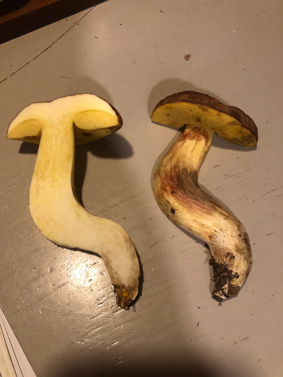 X. ferrugineus hat weissliches Fleisch, daher scheidet der hier eigentlich aus. Was es ist, hätte ich aber auch nicht gewusst. Zum Glück ist mit Jürgen hier ein Röhrlings-Experte anwesend.