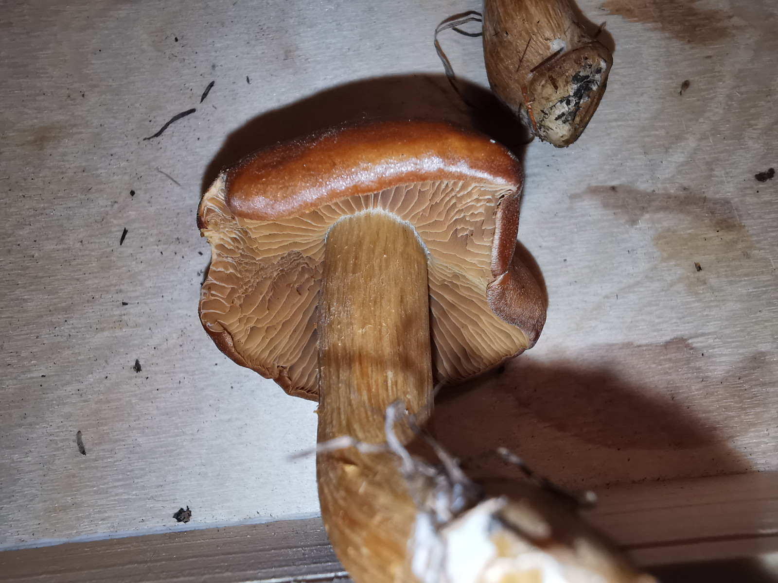 Lamellen: jung hell ocker, dann zimtbräunlich, auffällig fand ich die weisslichen Lamellenschneiden